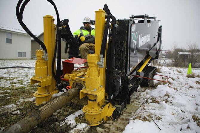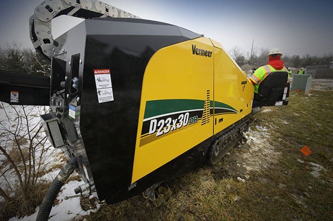 | The D23x30DR S3 Navigator® horizontal directional drill helps lead the way in rock drilling and continues the legacy of the S3 badge - speed, simplicity and sound. Adding to the Vermeer lineup of rock drills, the D23x30DR S3 offers dual rod technology in a compact yet powerful machine that enables operators to confidently and efficiently maneuver through rock in congested cities, busy neighborhoods or tight jobsites. Building on the dependability of the D23x30 S3, this rock drill offers a short and narrow footprint and quiet power for operator comfort while minimizing jobsite disturbance. Common controls can help operators transition smoothly into rock drilling from a single rod machine, while new tooling options can offer precise steering and maximized wear life to help provide optimized jobsite productivity. The D23x30DR S3 rock drill delivers impressive power that can help you bore through challenging ground conditions and keep you rocking on a demanding jobsite. |