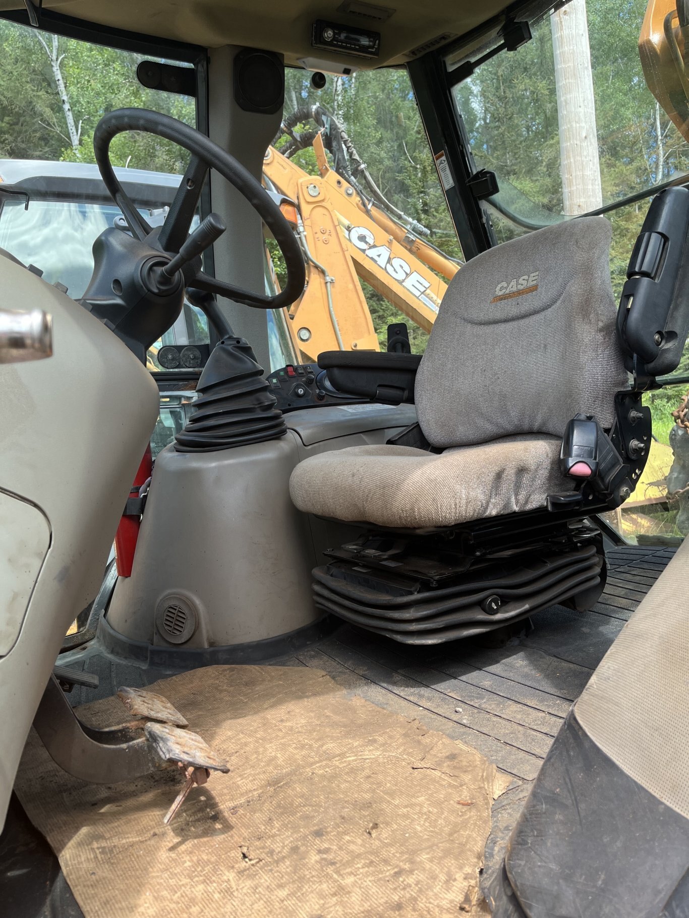 4-wheel drive; (8250 hours...hour meter is not functional but real hours have been scanned. Extendahoe; Cab w/heater w/AC, Manual Backhoe Quick Coupler; Suspension Seat; Pilot Controls; Deluxe Interior; 14x17.5 Front Tires; 21LR24 Rear Tires