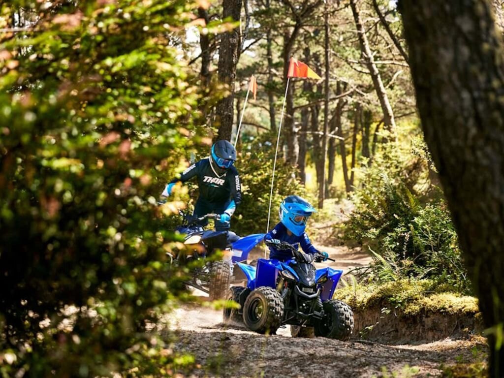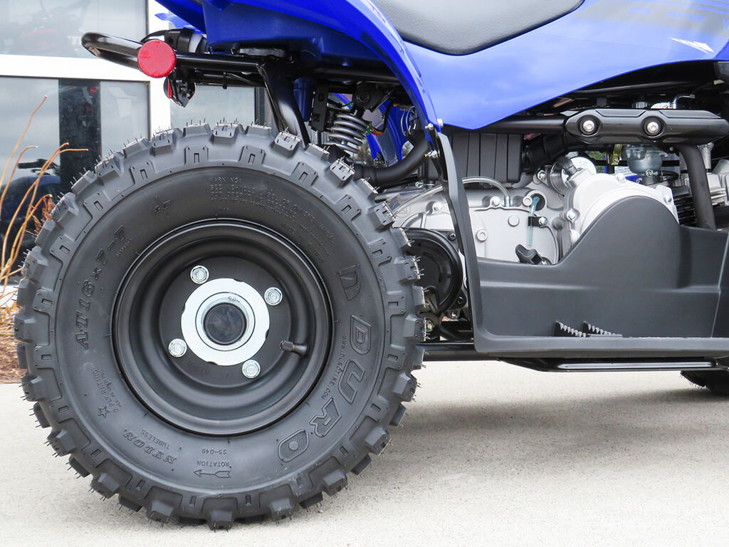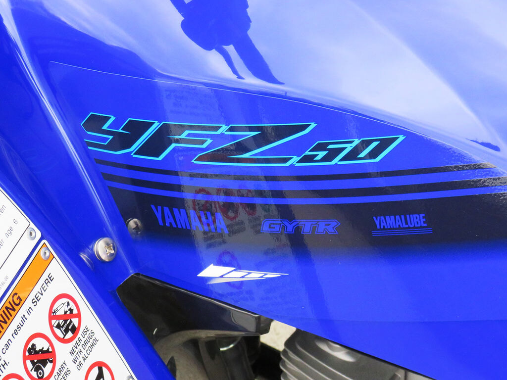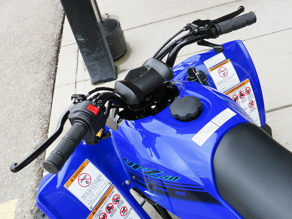The YFZ50 is engineered as the ideal starting point for aspiring ATV riders ages 6 and up. With a low-maintenance 49cc engine tuned to develop responsive, controllable performance and engine limiters with a power cut-off tether switch for safety, it\'s easy for young riders to feel comfortable as they grow their skills.