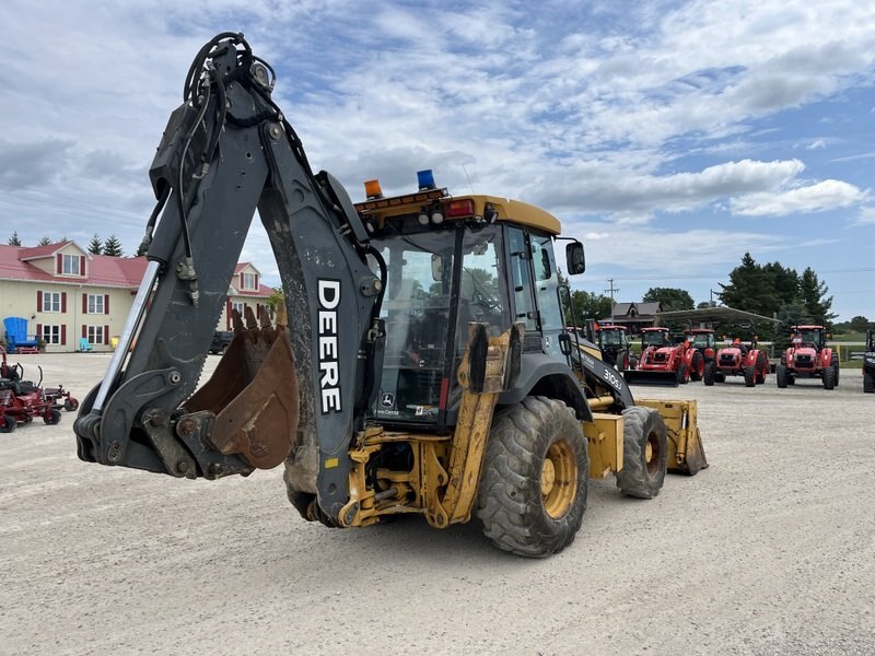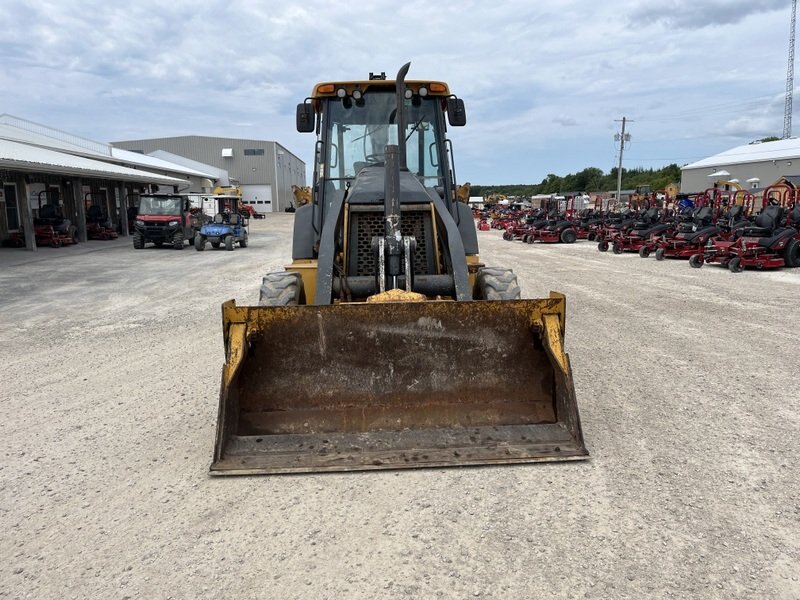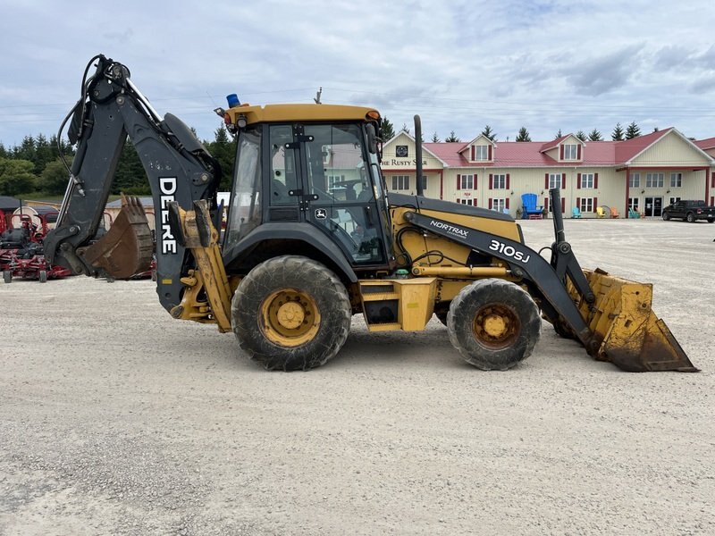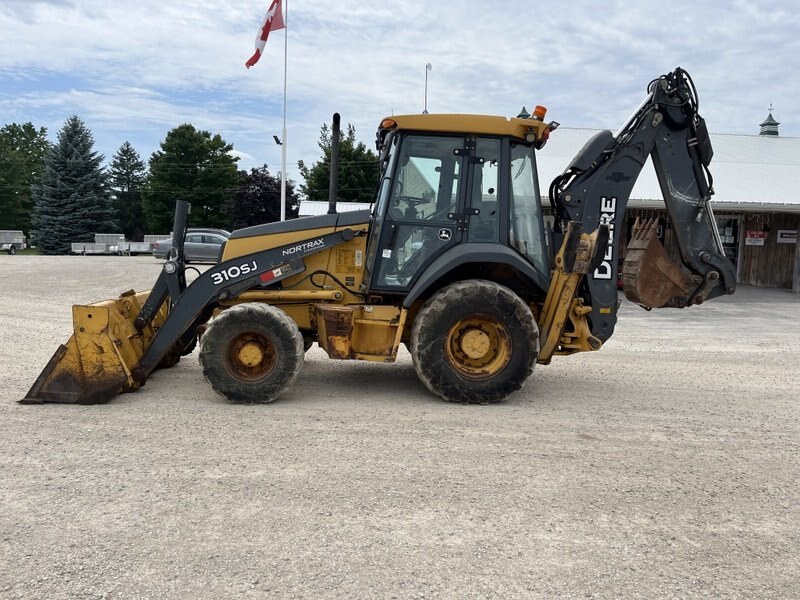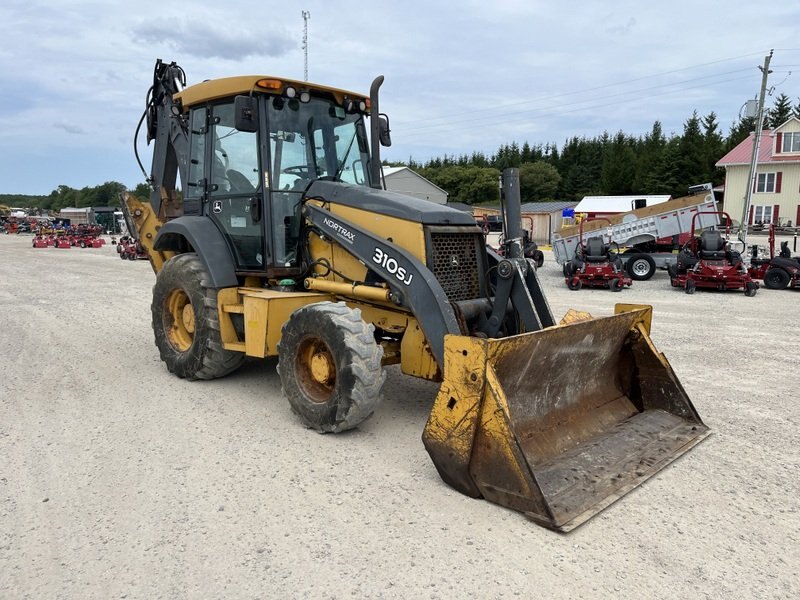 2012 John Deere 310SJ is powered by a 92hp John Deere diesel engine. Unit is equipped with front hydraulic 4 in 1 bucket. Enclosed heated cab with all glass intact. 4 wheel drive with 4 speed transmission. Unit is extendahoe with pilot controls. Machine is equipped with rear auxiliary hydraulics with manual pin grabber. Operating weight is about 17,200lbs. Hour meter reads 5281.