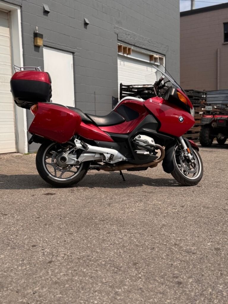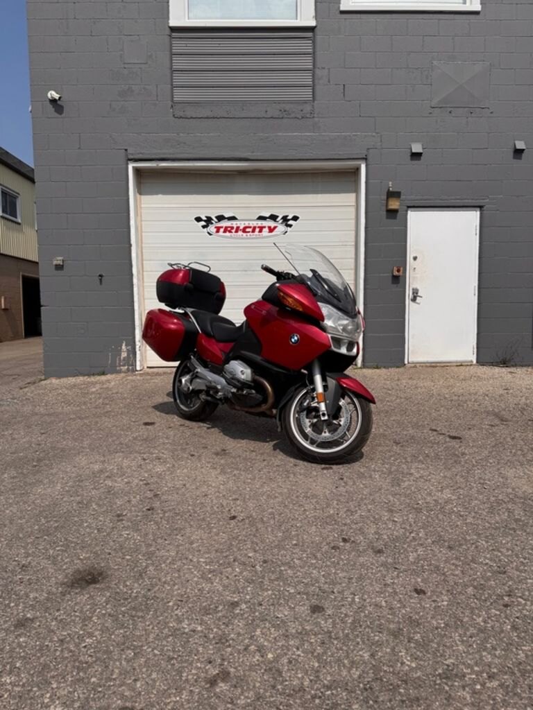Is BMW's fully faired touring motorcycle, completely redesigned from its predecessor, the R1150RT, with a 15% power increase, 44lbs weight reduction, and features like Electronic Suspension Adjustment (ESA).