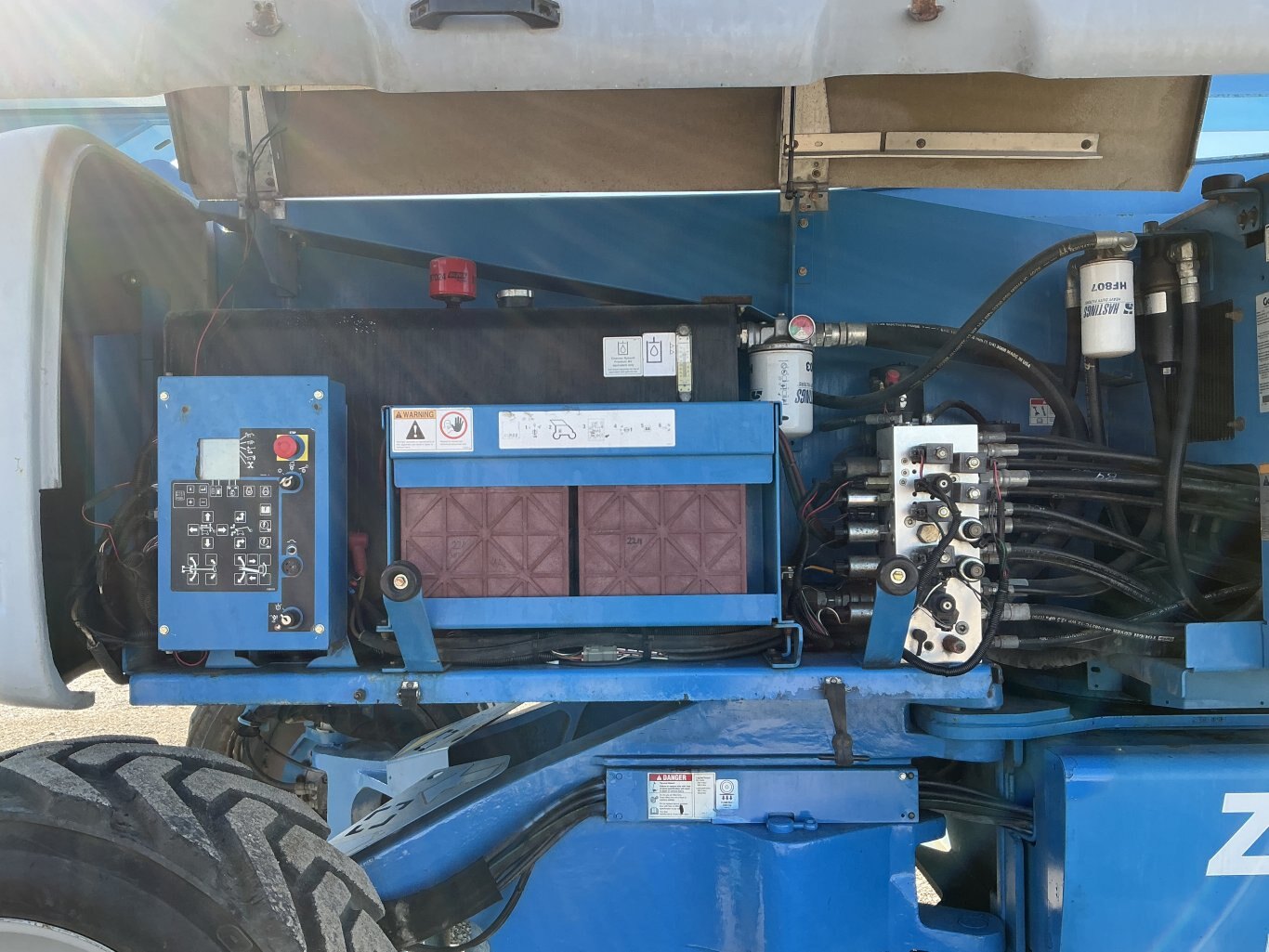 Articulating man lift, 2012 Genie model Z135/80. This boom lift has a platform height of 135 feet giving 141 feet working height and 69 feet outreach. 4WD driveline and powered by a Perkins diesel engine. Machine weighs around 45000 lbs. Hour meter shows 4004