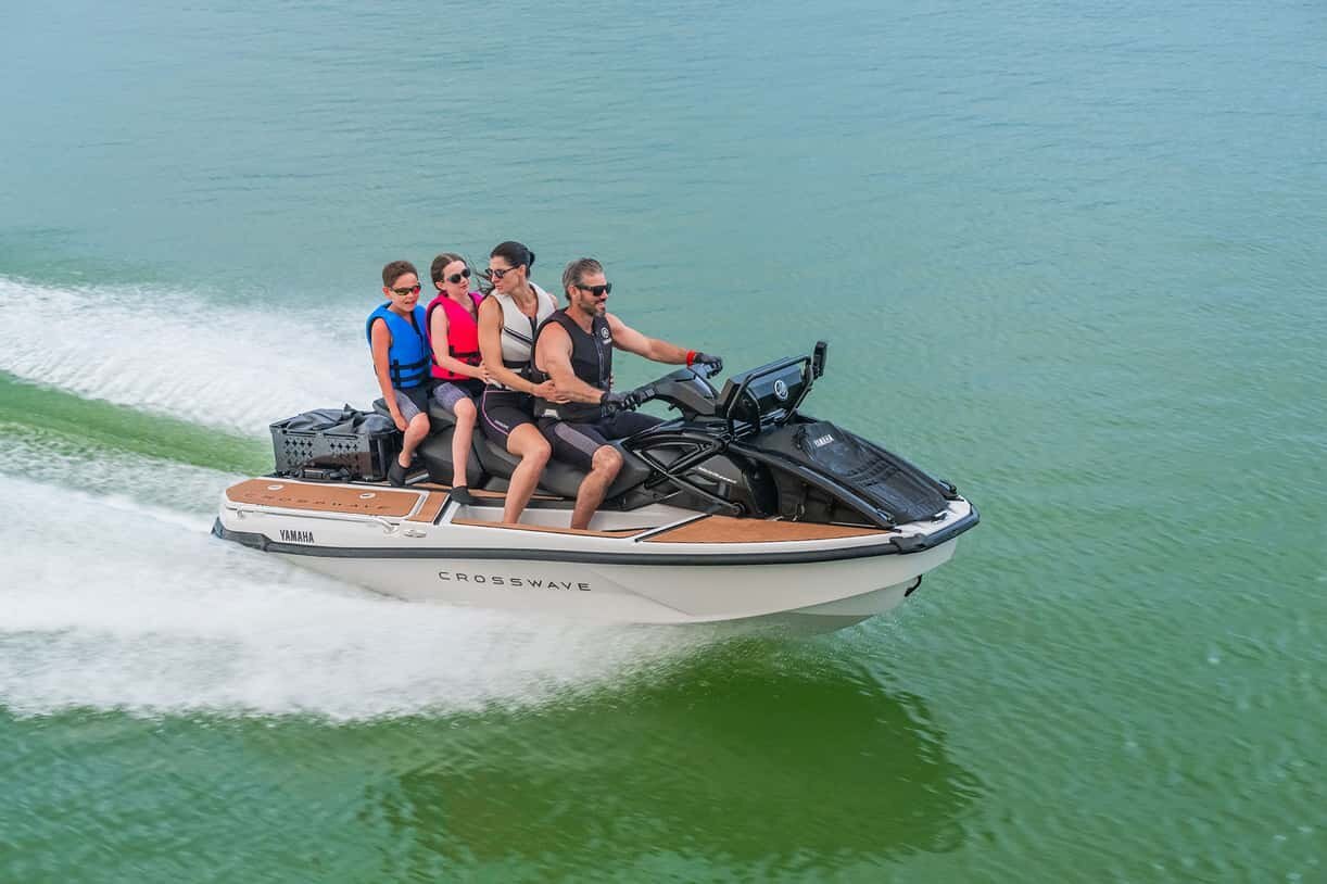 Go BIG. Coming Spring 2026, the all-new Yamaha CrossWave sets a new benchmark in versatility, making it the ultimate companion for adventure seekers, fishing enthusiasts, and those who crave effortless cruising. Built on Yamaha’s longest and largest platform ever, the CrossWave offers exceptional stability and space for up to 4 riders. Its generous storage capacity ensures you’re always ready for extended outings, with ample room for gear. Whether slicing through open waters or relaxing in a hidden cove, the CrossWave redefines what’s possible on a WaveRunner.