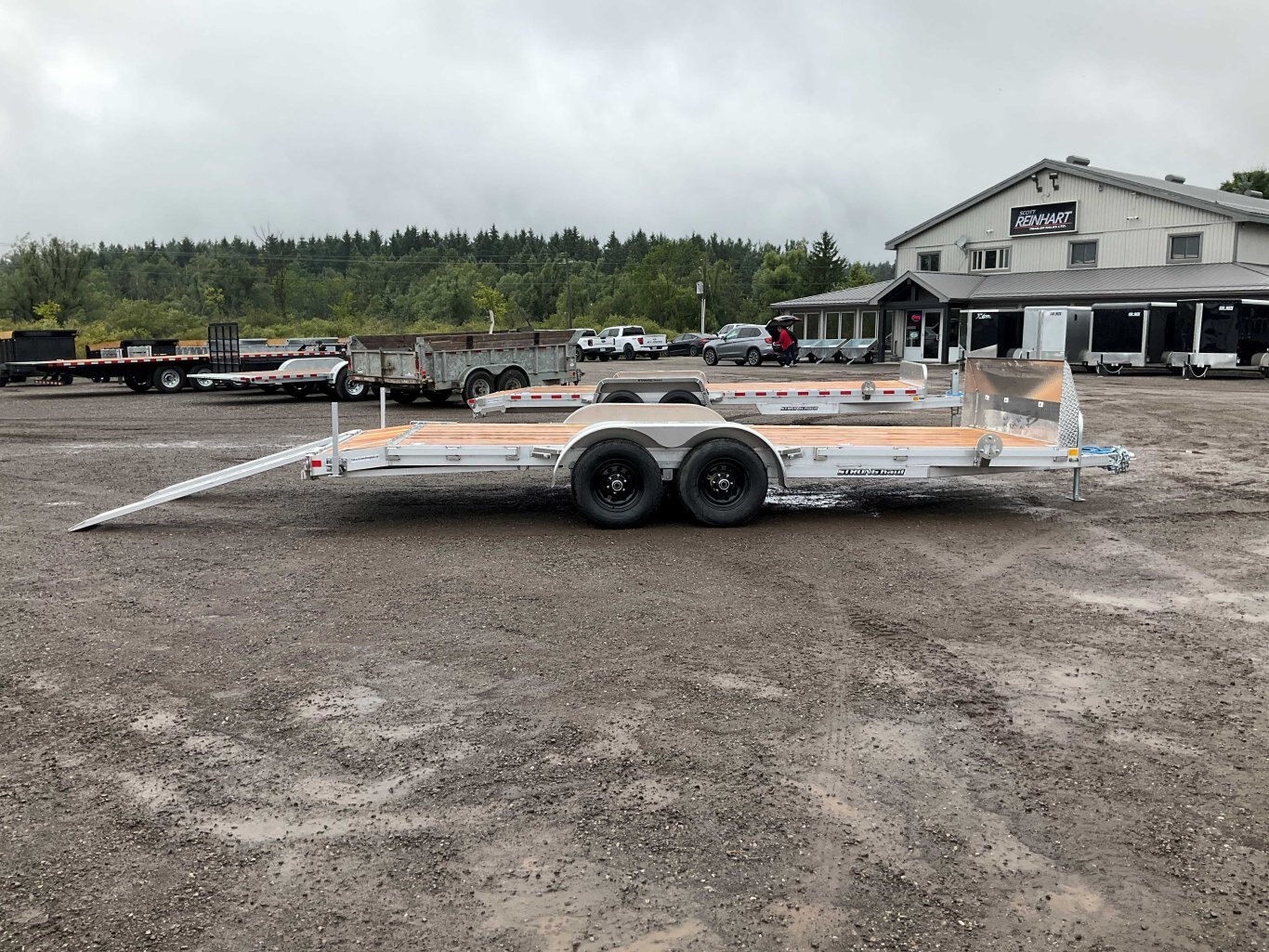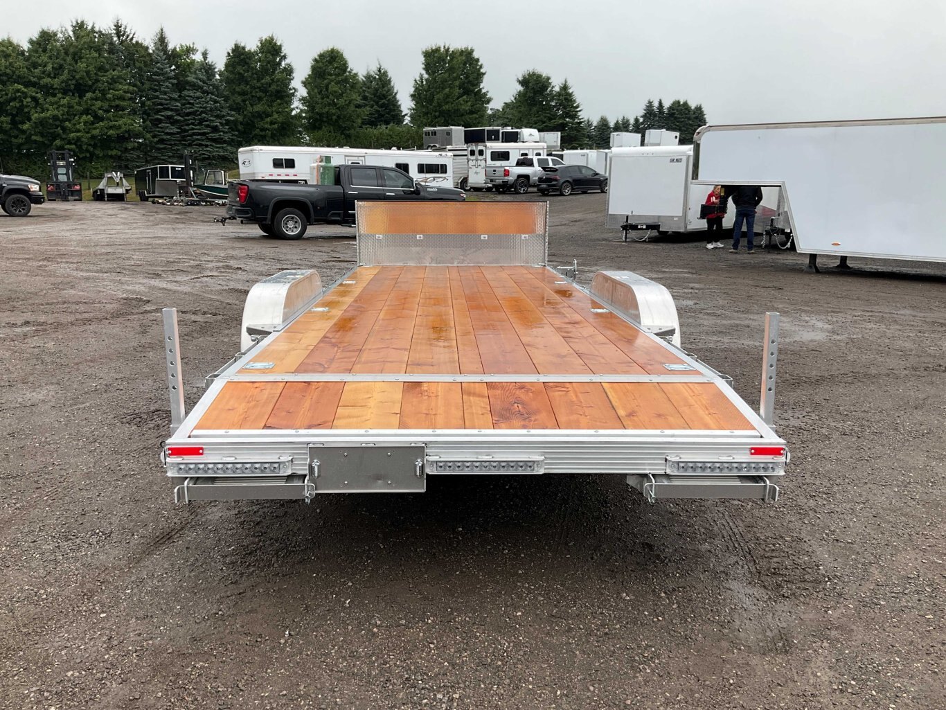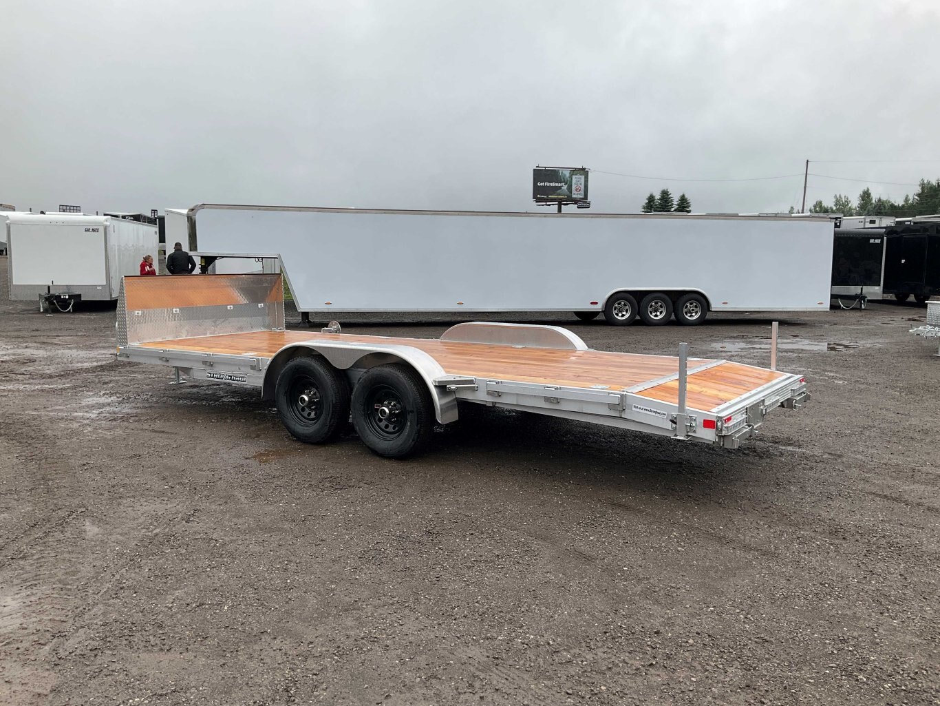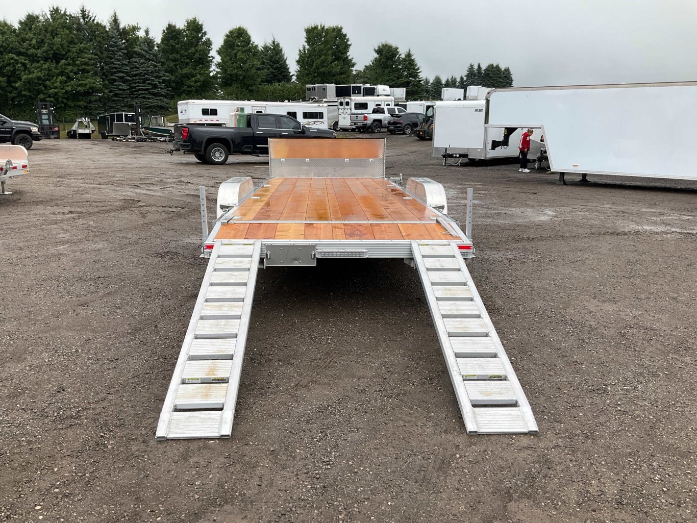 9890LB GVWR, 2 5200LB Spring Axles, Electric Brakes on Both Axles, 15" Radial Tires, 18' Plus 2' Dovetail, All Aluminum Frame, 15" Front Rail with Spray Shield, LED Lighting, 2-5/16 Coupler, Enclosed Wiring, 5K A-Frame Drop Leg Jack, 2x10 Plank Decking, Pocket Style Ramps, 8 D-Ring Tie Downs, Spare Tire Mount, Rear Stabilizer Stands