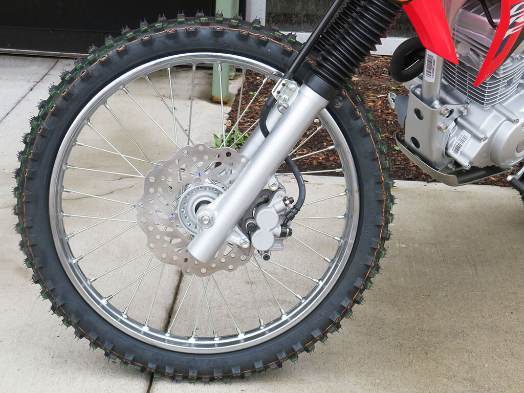 The CRF125F's leading axle Showa forks and Pro-Link® Showa shock deliver an excellent combination of spring and damping rates to cover a wide range of riding conditions.