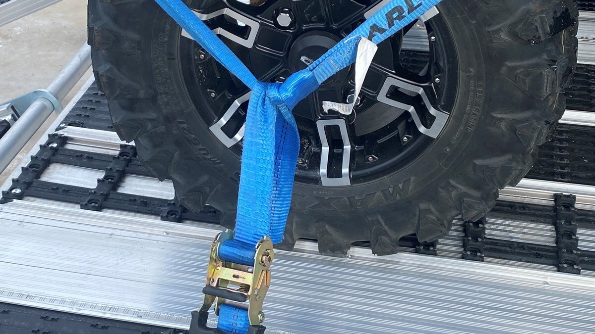 Extruded sides which you may recognize from our sled decks. With tie down points down the entire side at a 45 degree angle allowing you to tie down dirt bikes, various items you may carry from the lumber yard or to the dump or your ATV or side by side using our tire tie downs.