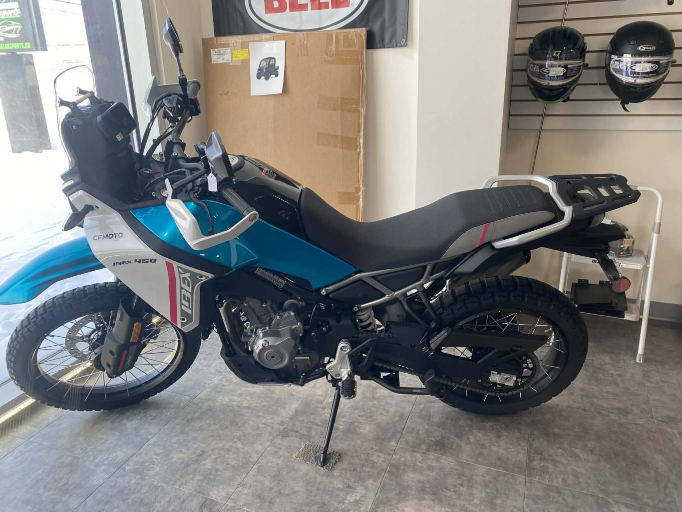 Adventure begins where the road ends. The IBEX 450 brings multi-terrain ability and versatility to CFMOTO's adventure touring category. Now lighter in weight, with responsive power and torque from its acclaimed engine, smartly-equipped for dirt, the IBEX 450 is perfect for the adventurous rider.
