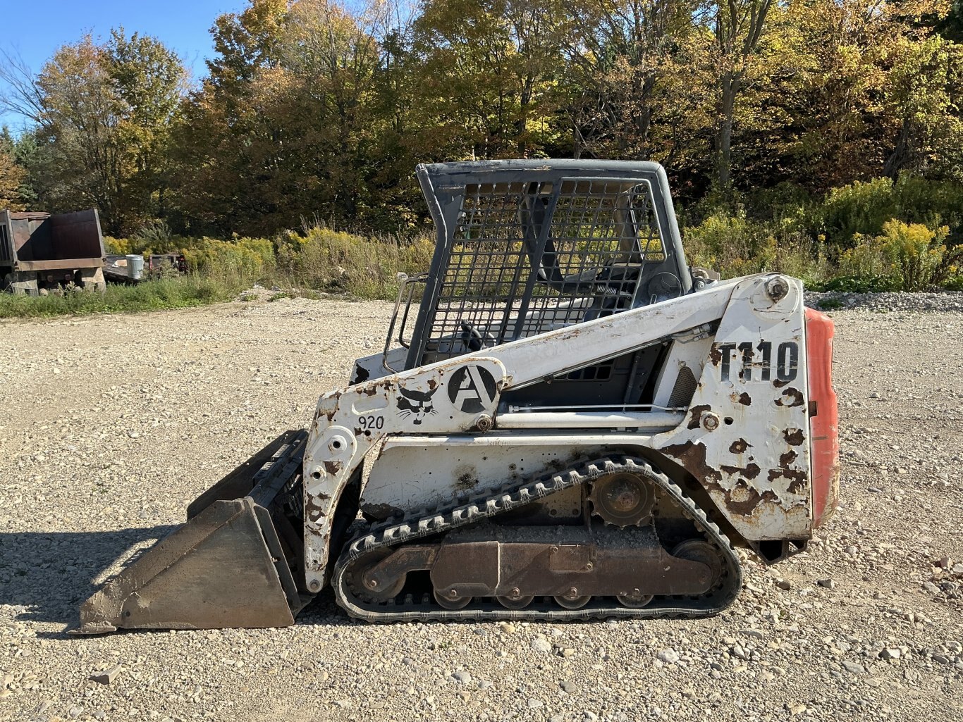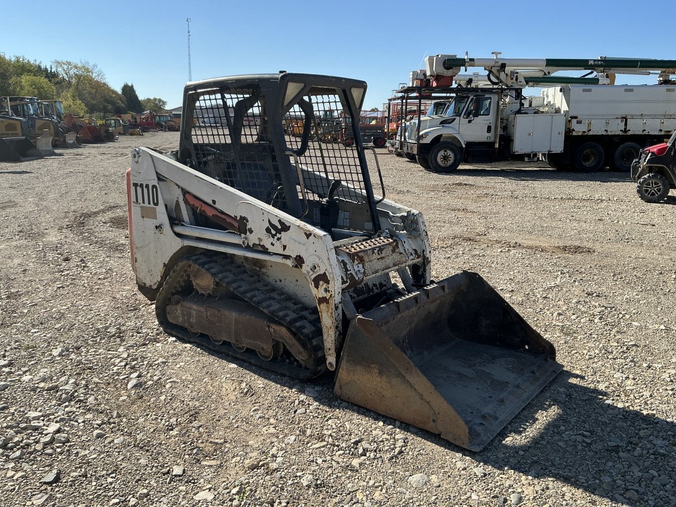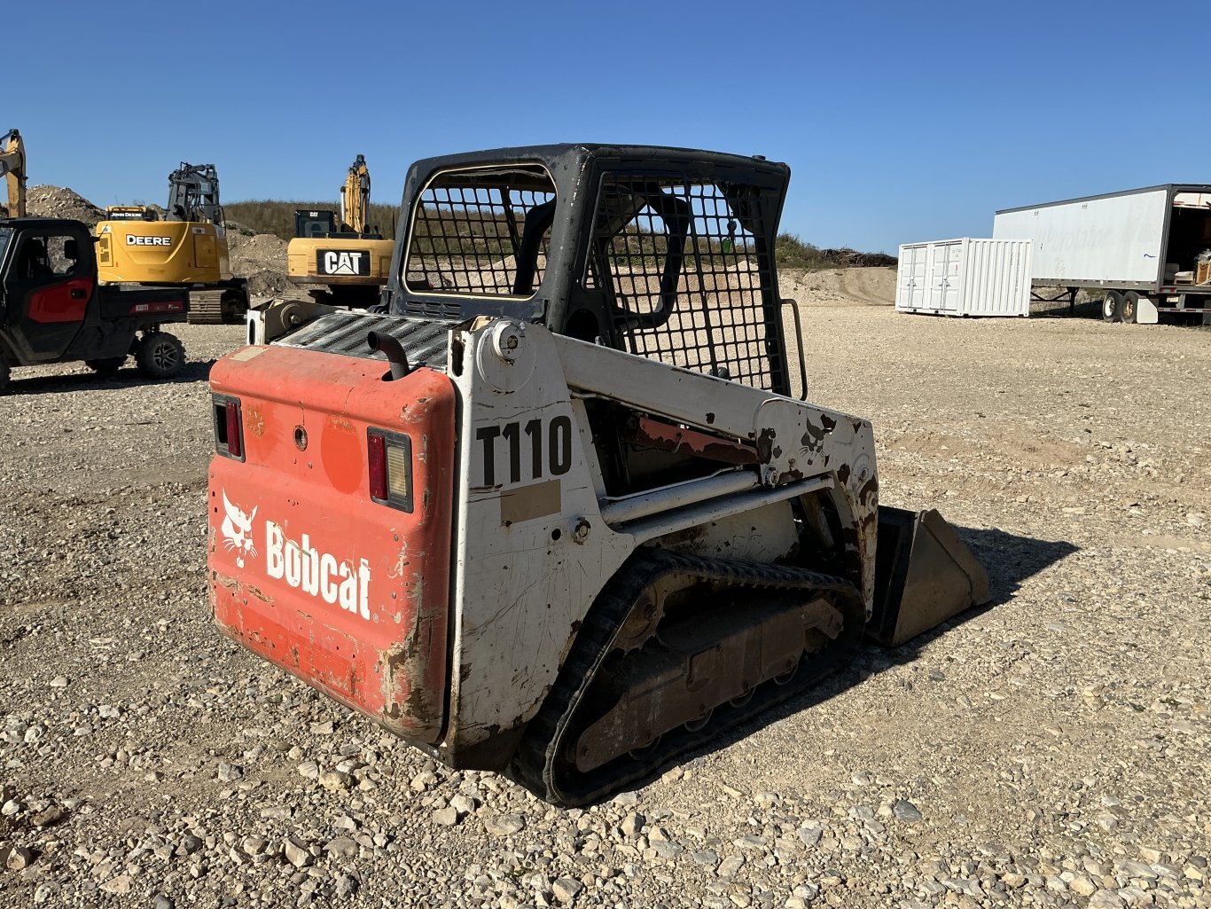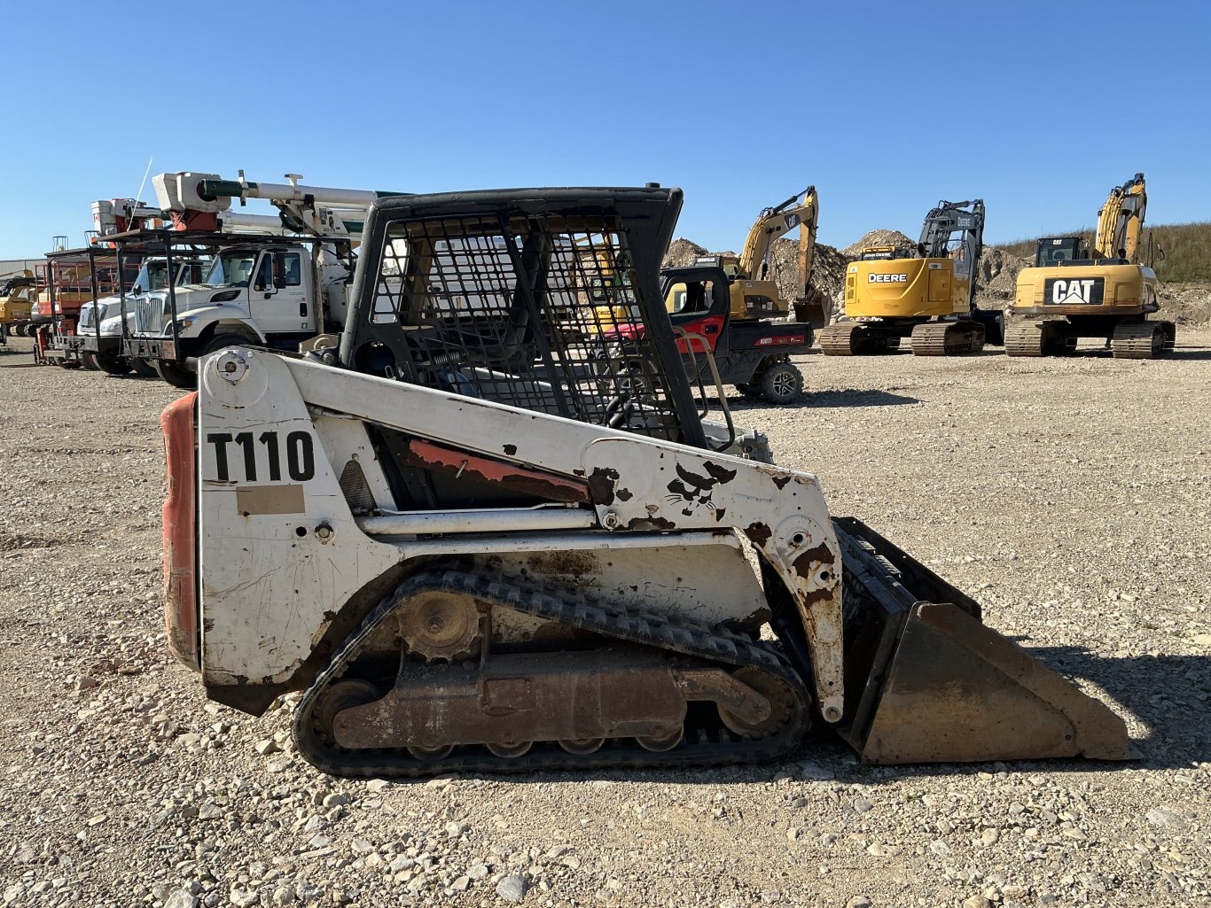 2013 Bobcat T110 skidsteer powered by a 41hp diesel engine. Iso and h pattern controls. manual quick connect bucket and auxiliary hydraulics. Hour meter reads 2873.