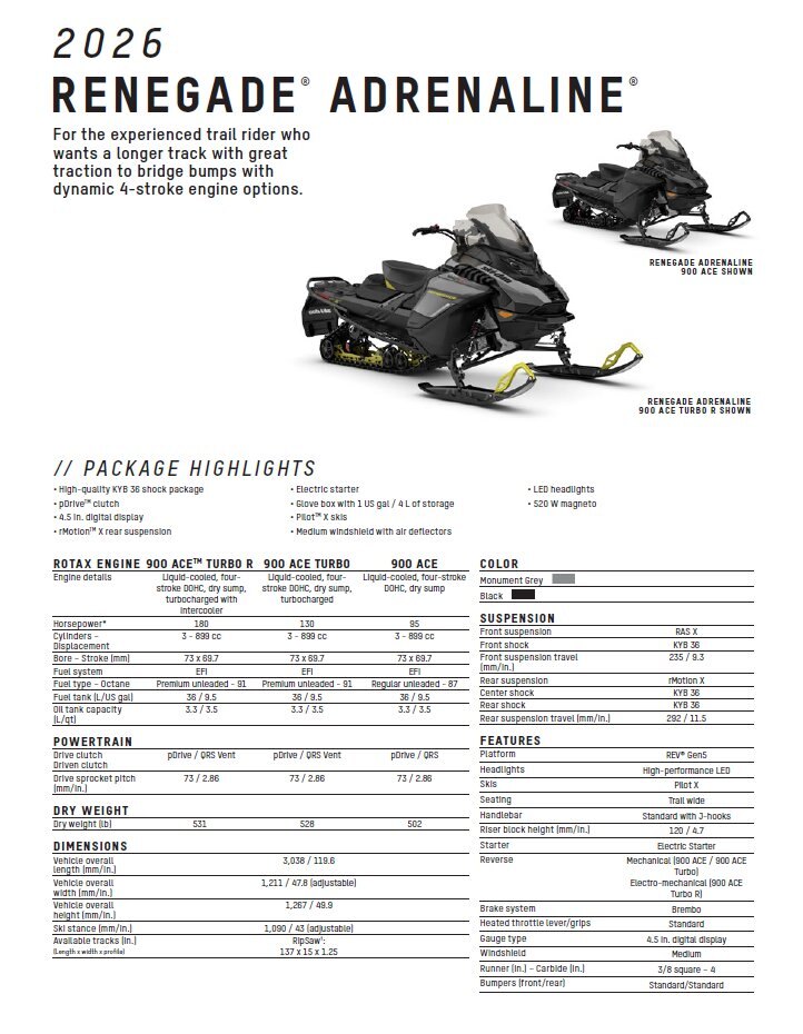 2026 Ski-Doo Renegade Adrenaline 900 Ace RipSaw 1.25" E.S.