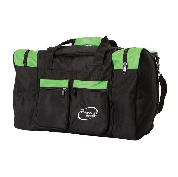One of the two (2) side compartments can fit a 3/8'' x 164' rope while the other one can hold either two batteries and a charger, or other accessories of your choice. The front pockets are perfectly sized to slip pulleys and carabiners in, whereas the main compartment can hold any of the above-mentioned winch along with some slings. Therefore, a complete kit can easily be carried thanks to its robust handles and its shoulder strap.