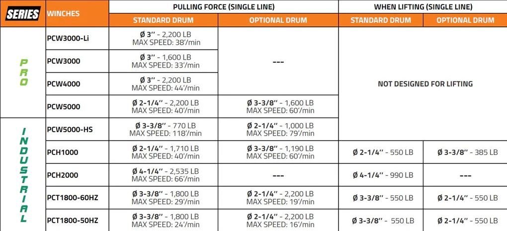 All drum sizes are supplied with their corresponding rope guide and screw(s).