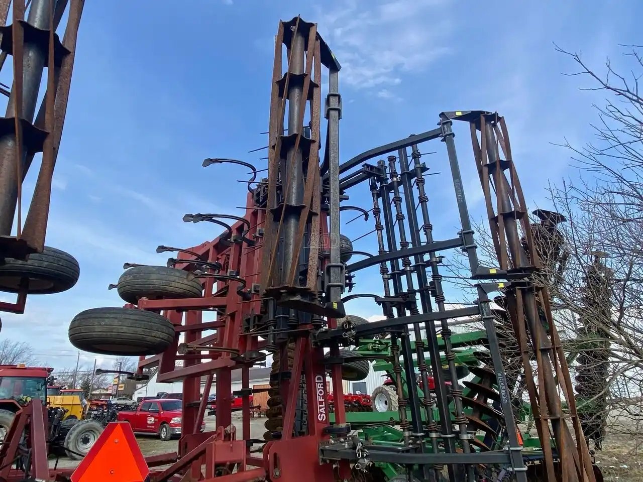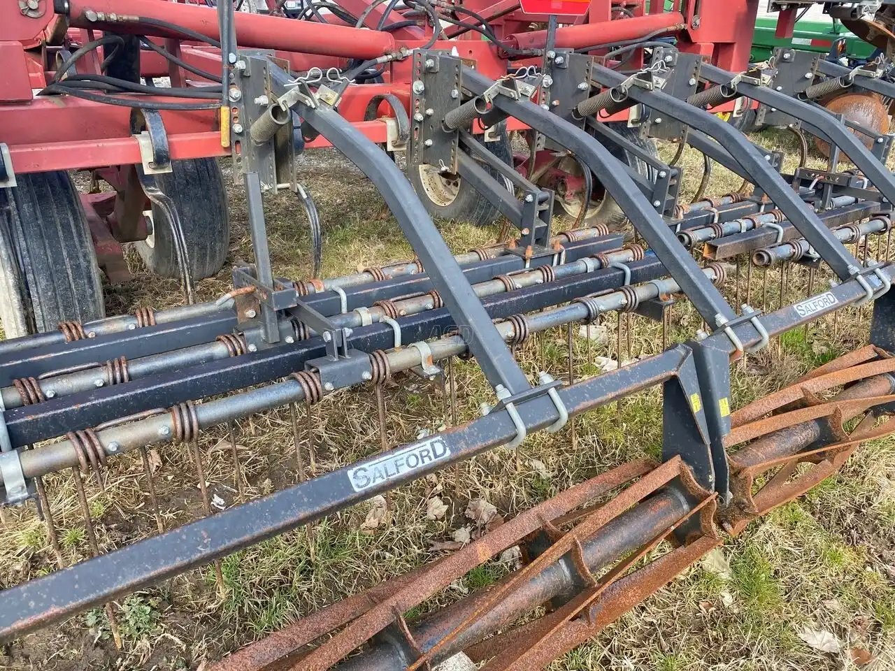 40 Ft finger harrow with S-shaped three-tooth tines, with single rolling basket, rocking axles and hydraulic depth adjustment