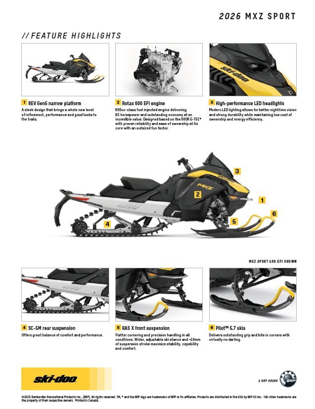 2026 Ski-Doo MXZ Sport 137 600 EFI RipSaw 1.25" E.S.