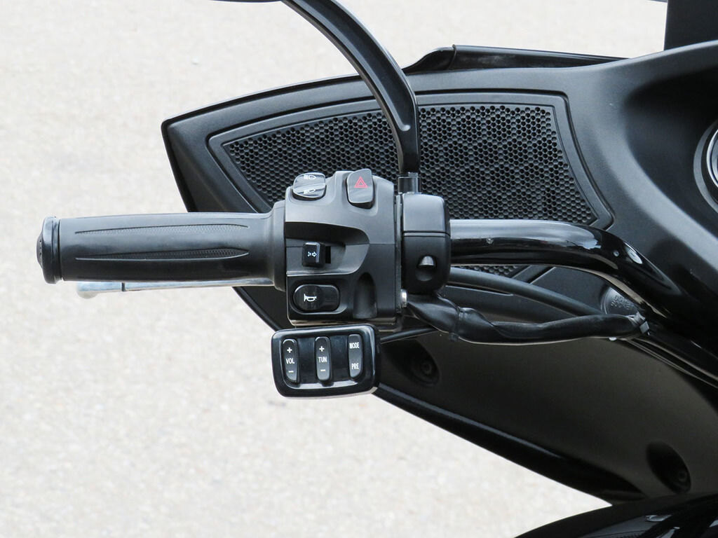 The Victory Cross Country 8-Ball has a sleek, stylish fairing that offers impressive weather protection to enhance your ride. The fairing has twin audio speakers and an auxiliary audio cord. Use the cord to connect a smart phone or the device of your choice to pump your personal playlists through the speakers.
