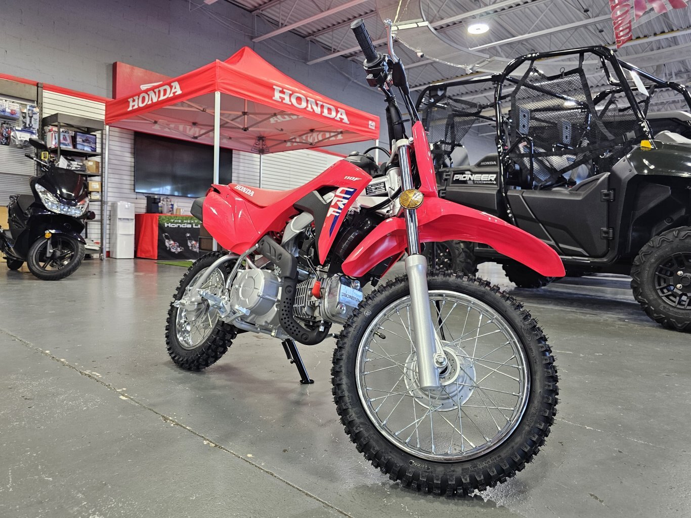 The Honda CRF110F hits it out of the park when it comes to delivering nonstop fun with easygoing performance. If you’re looking for a great starter youth dirt bike with a little pep, the CRF110F is a step up from our CRF50F in size and power – while still offering an automatic clutch to teach shifting control.