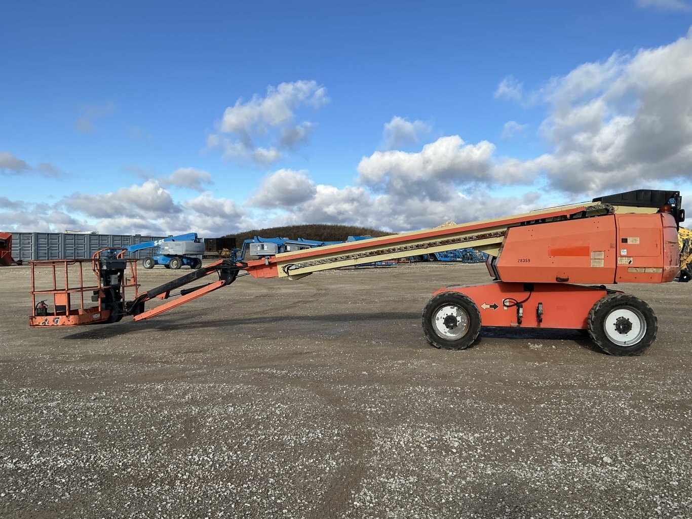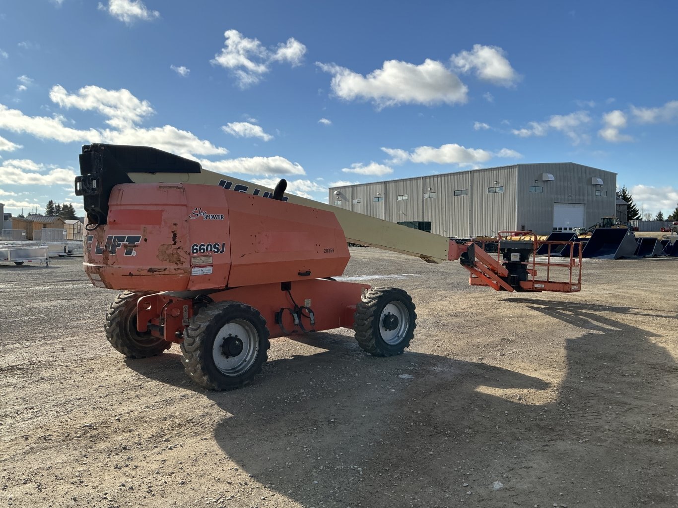 2012 JLG 660SJ straight boom with jib. This boom lift has a platform height of 66 feet giving 72 feet working height and 56 feet outreach. 4WD driveline and powered by a GM gas engine. Machine weighs around 25,000 lbs. Has valid structural till JAN 2027. Hour meter shows 4979.
