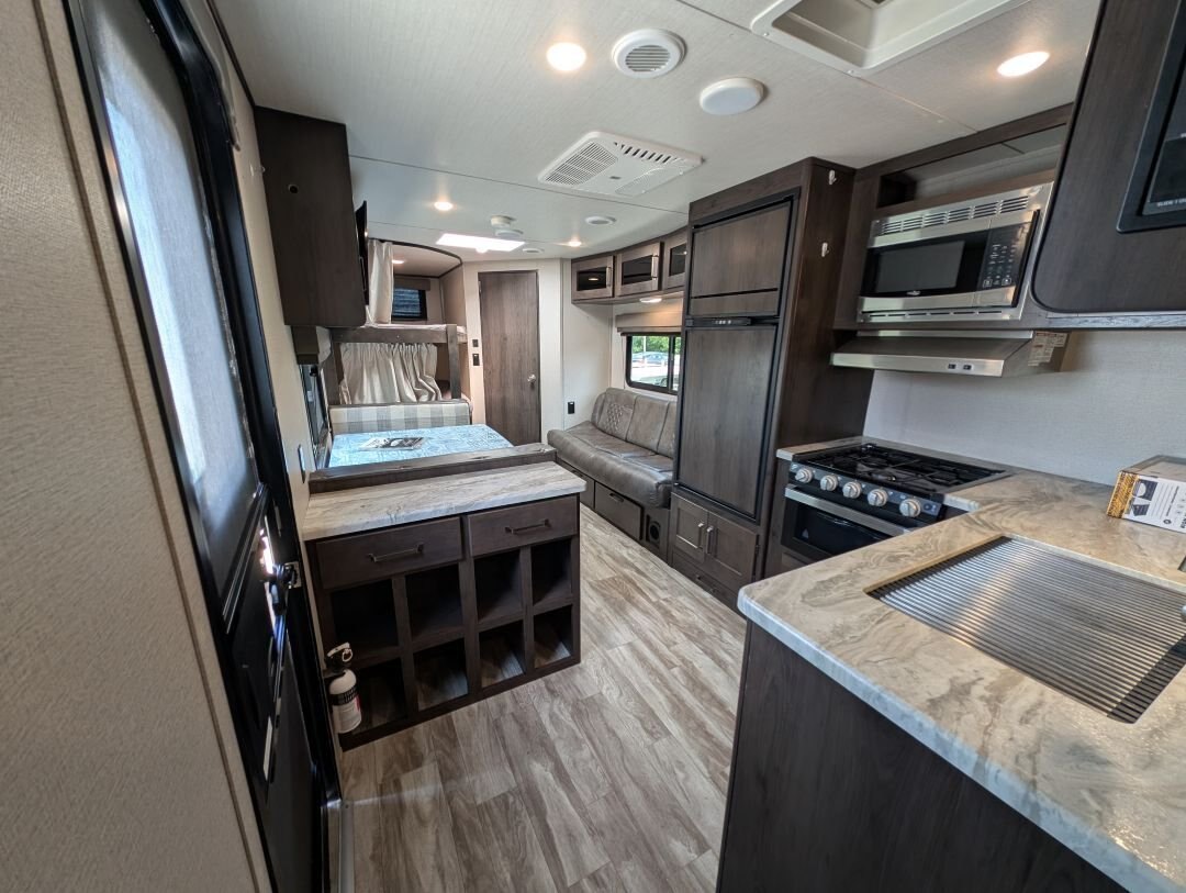 The 2020 Grand Design Transcend Xplor 247BH just came in on consignment and is in excellent condition. Financing Available OAC. This spacious 2020 Grand Design Transcend Xplor 247BH is family-ready, easy to tow (~29.9 ft, ~5,392 lbs), and sleeps up to 10. FEATURES • Front queen bedroom, rear bunkhouse, sofa & dinette convert to beds • Full kitchen: 3-burner range, oven, microwave, fridge, deep stainless steel sink • Bathroom with walk-in shower, ABS surround, power vent, foot-flush toilet • A/C (13,500 BTU) & furnace (30,000 BTU), 78? interior ceilings, skylights EXTERIOR / CONVENIENCE Power awning, exterior shower, tinted windows, pass-through storage, black tank flush, solar prep CAPACITIES Fresh: 62 gal Gray: 78 gal Black: 39 gal Propane: 40 lbs (20lb x 2) CONSTRUCTION Aluminum/wood construction, solid cabinetry, winterization-ready. TOWABLE WITH Half-ton or larger trucks and large SUVs
