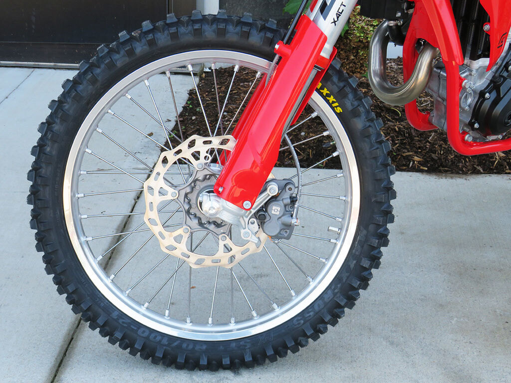 PARTSFast is fun but slowing down is essential, which is why all GASGAS dirt bikes are fitted with high quality Braktec calipers and controls. Speaking of controls, the rear brake pedal is now considerably stronger to prevent it from getting bent out of shape in a crash or catching the ground when you're railing through a deep rut. When you combine those Braktec calipers with GASGAS specific brake disks, 260mm up front and 220mm at the rear, the end result is amazing braking performance.