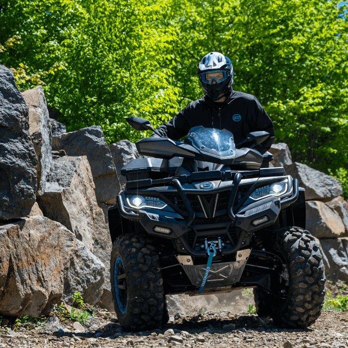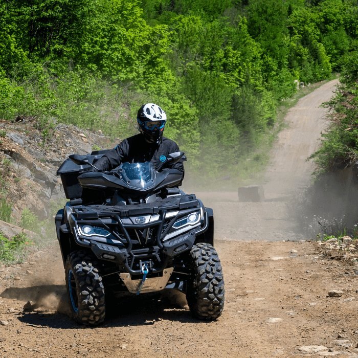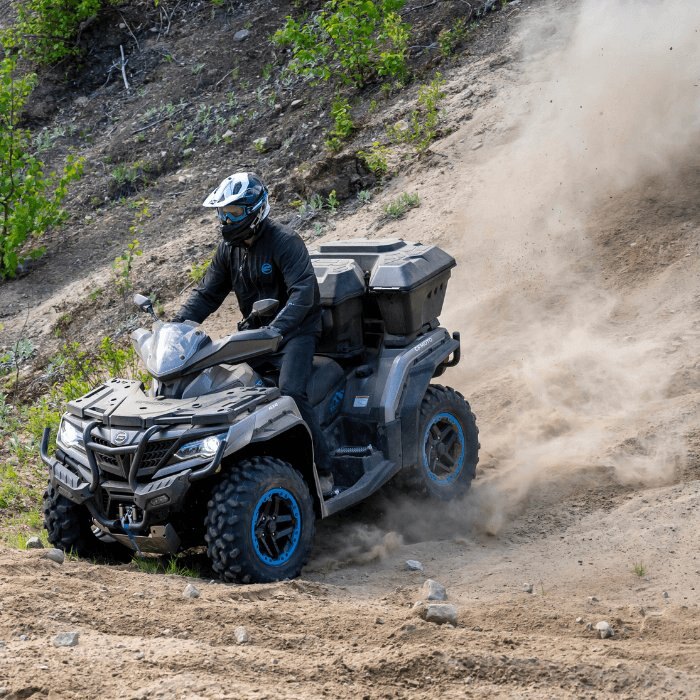 The CFORCE 1000 Overland turns many heads and makes many jealous! This 963cc 4-wheeler is the ideal vehicle for going on long rides with its two large-capacity cargo boxes.