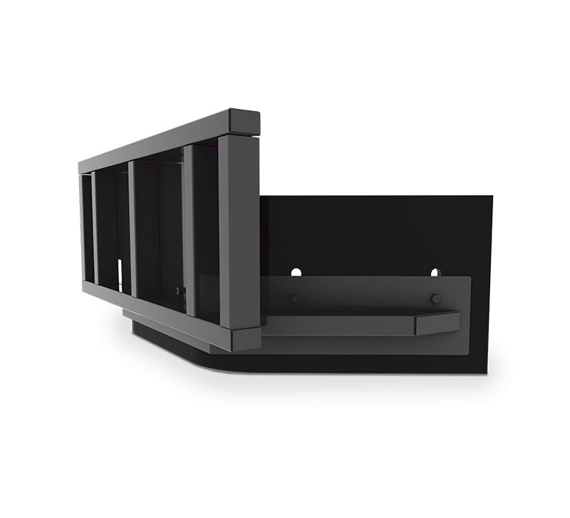 - Enclosed frame with splash plate