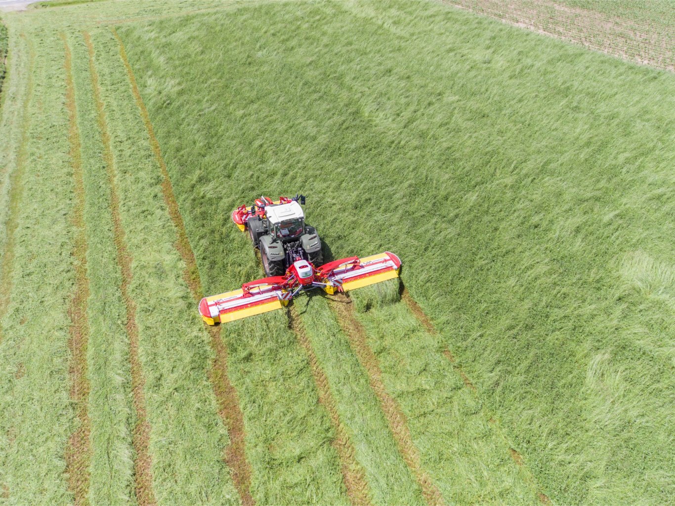 With the NOVACAT V 10000 mower combination, we at PÖTTINGER combine high output with intelligent technology. Best possible ground tracking, optimum use of the mowing width and maximum reliability are the standout features of these mowers.