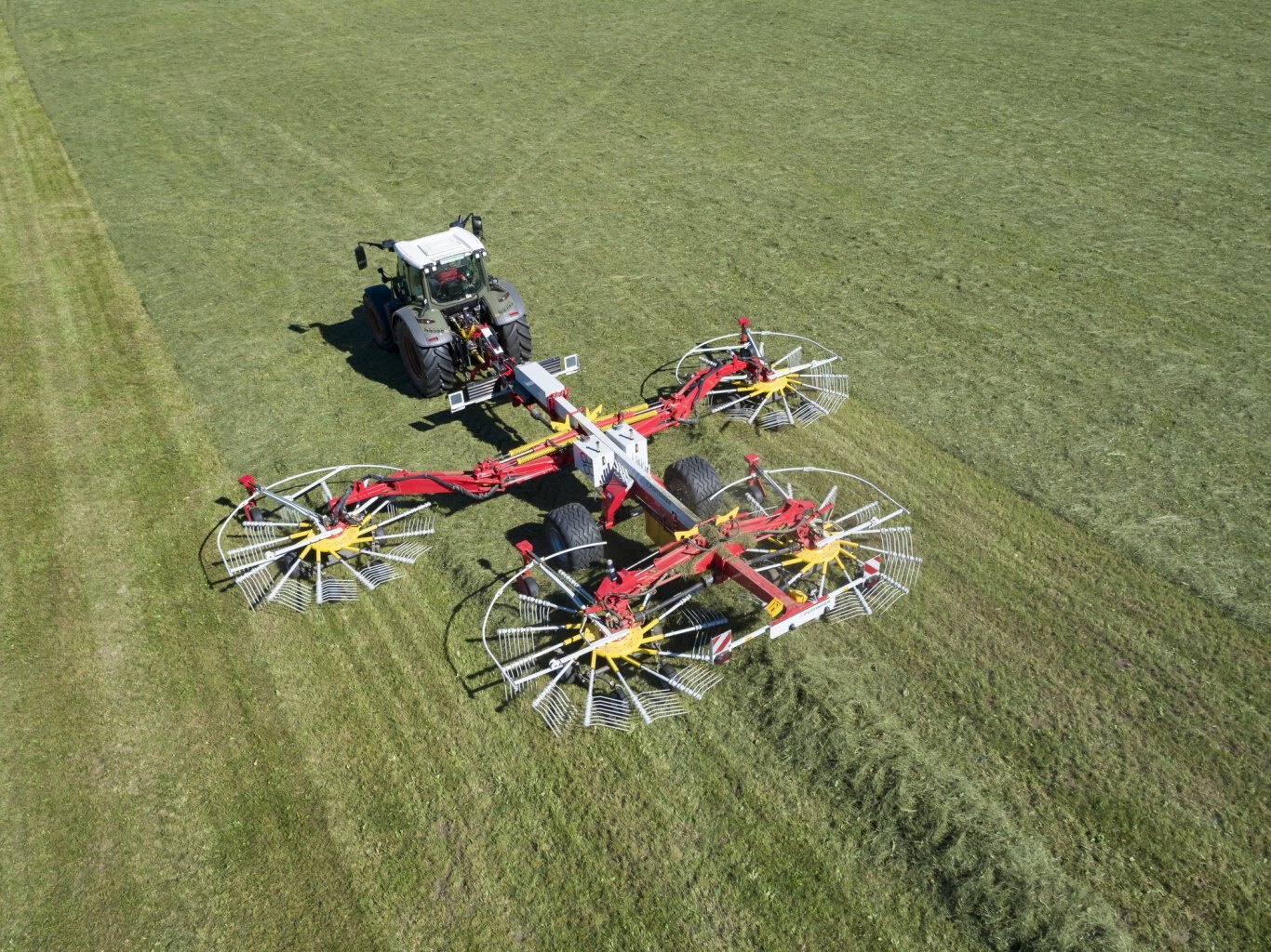 The four-rotor rakes give you maximum output thanks to their large raking widths and the many well thought-out details. The enormous range of working width ensures maximum flexibility during operation. Clean and tidy work across the full working width is also guaranteed by the optional MULTITAST jockey wheel system.