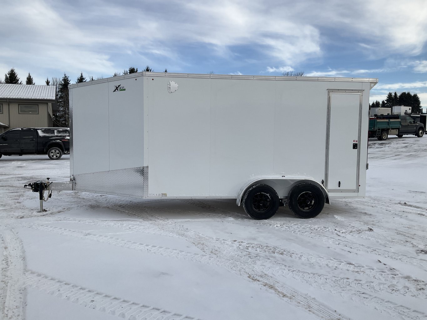 7000LB GVWR, 2 3500LB Spring Drop Axles with EZ Lube Hubs, Electric Brakes on Both Axles, 15 Inch Radial Tires, Aluminum Wheels, 7' Tall, .030 White Screwless Exterior, 32" Side Man RV Door with RV Lock, Rear and Front Ramp Doors with Cable Assist- Drive On/Drive Off, 1/4" White Lauan Walls, 3/4" Rainblock Floor, Seamless Aluminum Roof, 2 Wall Vents, 2 12V Dome Lights with Switch, ATP Stone Guard, 12" Extended Tongue, 2-5/16 Coupler, A-Frame Tongue Jack with Sand Pad, Rear Spoiler with Integrated Lights, D-Rings, Loading Ramp Lights, Sealed LED Lighting