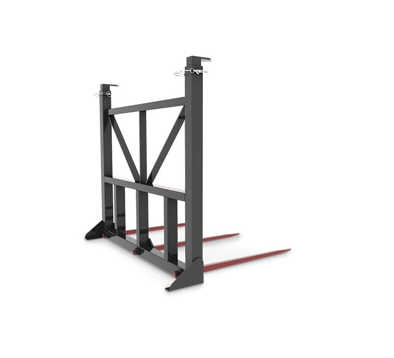 - 50" high frame with adjustable guard posts for safe handling of large square bales up to 3 high