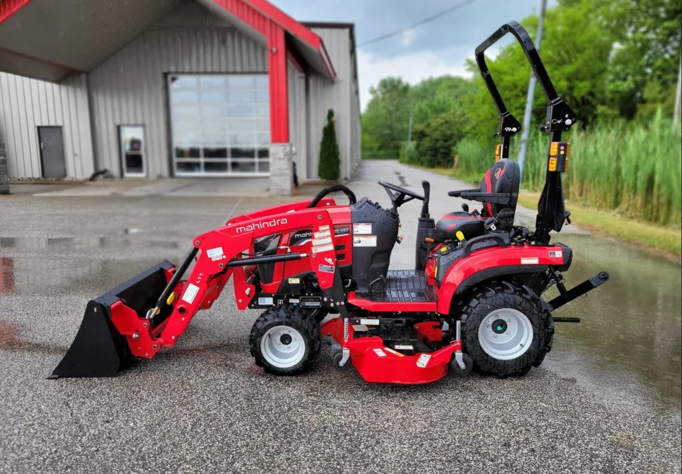 - Front Loader: Mahindra loader with quick-attach bucket