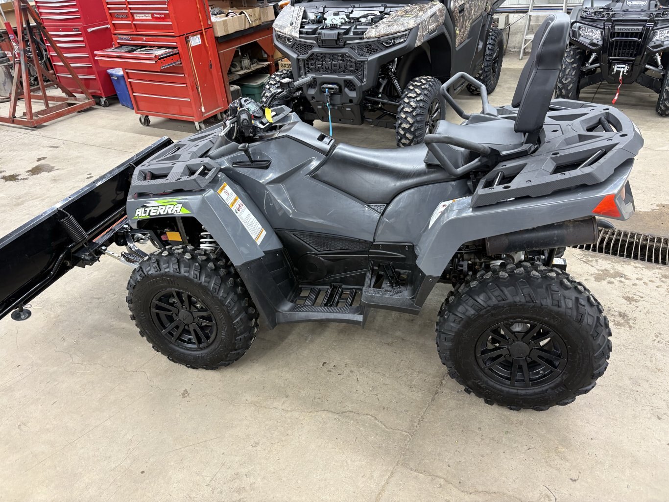 Only 434 kms. Used Alterra TRV700 with Power steering. Like new condition. Comes with winch , hand warmers and a snow plow. Local trade in .sold by us new.