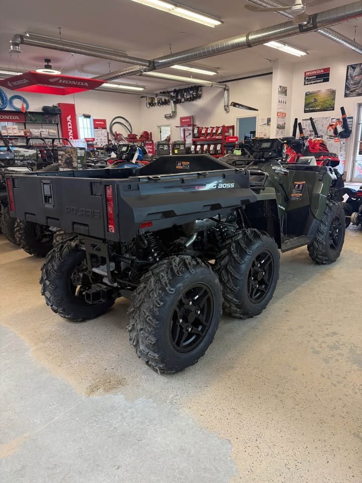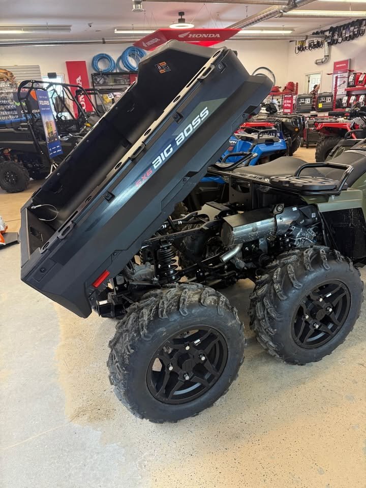 The 2026 Polaris Sportsman 6x6 570 is a heavy-duty, utility-focused ATV featuring a 567cc ProStar engine, 44 HP, and a 6-wheel drive system for maximum traction. It includes a massive 800-lb capacity rear dump bed, 1,500-lb towing capacity, and standard Active Descent Control. Designed for work, it has a 6.75-gallon fuel tank and high-capacity electrical output. Key Features and Capabilities: Performance: 44 HP ProStar 567cc 4-stroke DOHC single-cylinder engine with Automatic PVT P/R/N/L/H transmission. Drivetrain: One-Touch On-Demand AWD/2WD/6WD for superior traction. Suspension: Arched Dual A-Arm front suspension, independent rear suspension (IRS), and 11.5" ground clearance. Cargo & Towing: 800-lb capacity rear dumping box with Lock & Ride system, 90-lb front rack capacity, and 1,500-lb towing capacity. Technology & Control: Electronic Power Steering (EPS), Engine Braking System (EBS), and Active Descent Control (ADC) are standard. Recent Upgrades: 2026 models feature a 2.5x more rigid chassis, updated LED lighting, and a front bumper with an integrated 3,500-lb winch.