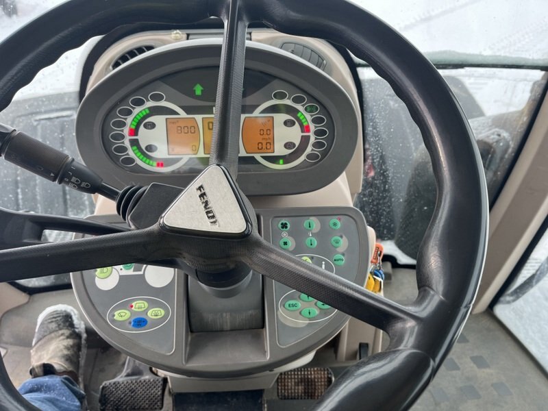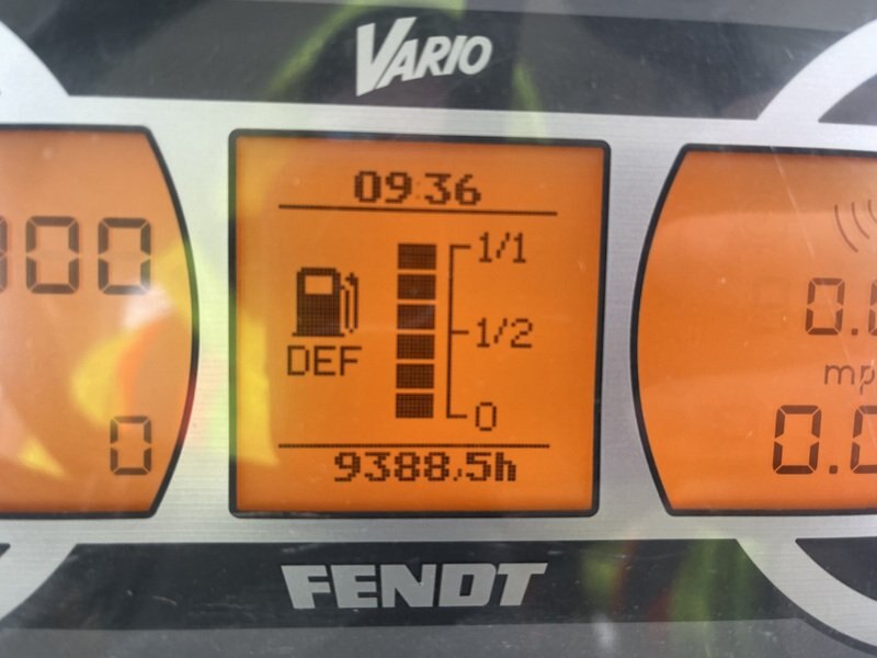2012 Fendt 930 Vario tractor powered by 296hp diesel engine. Enclosed cab with all glass intact. Equipped with front 3 point hitch and 2 sets for remotes. Rear equipped with 6 sets of rear remotes and case drain and trailer brakes. Front and rear Michelin tires. Hour meter rears 9388.