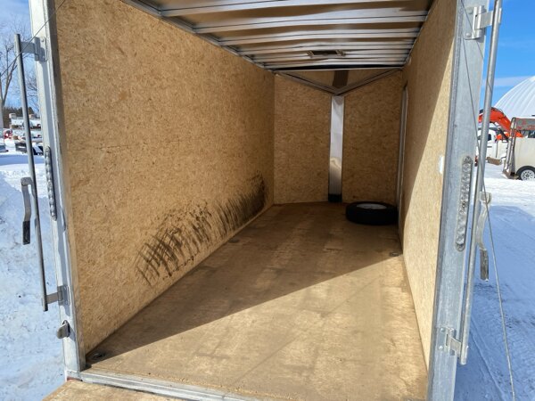 2022, 7x18 V-nose cargo trailer - tandem\n3500lbs axles, rear ramp, side door, spoiler