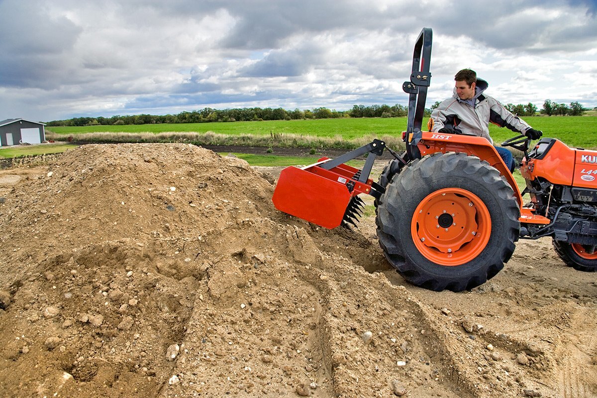 The scarifier shanks are heat treated and are easily adjusted for depth. The Farm King Box Scraper features a replaceable / reversible back to back cutting edge as well as replaceable / reversible scarifier shanks for forward and reverse use.