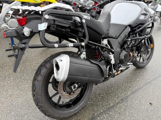 Sturdy chassis has integrated mounting points for unified Suzuki V-Strom luggage that’s is easy to clip on and off, and keeps the motorcycle trim when ready for touring. |