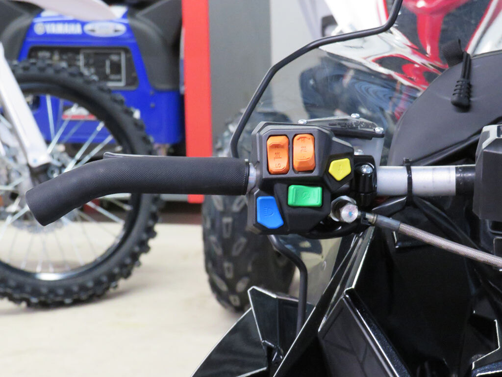 The AXYS chassis design is the key to delivering rider balanced control through the right rider positioning and centralized vehicle mass. The rider\'s hand position is moved 4.5\" forward, the feet position is 2\" forward, the knee position is 4.5\" forward, and the seat is 4.5\" forward. This means more bite for flatter cornering when in the neutral riding position and a lighter front end for climbing on top of the snow or the moguls when the rider shifts to the back of the sled.