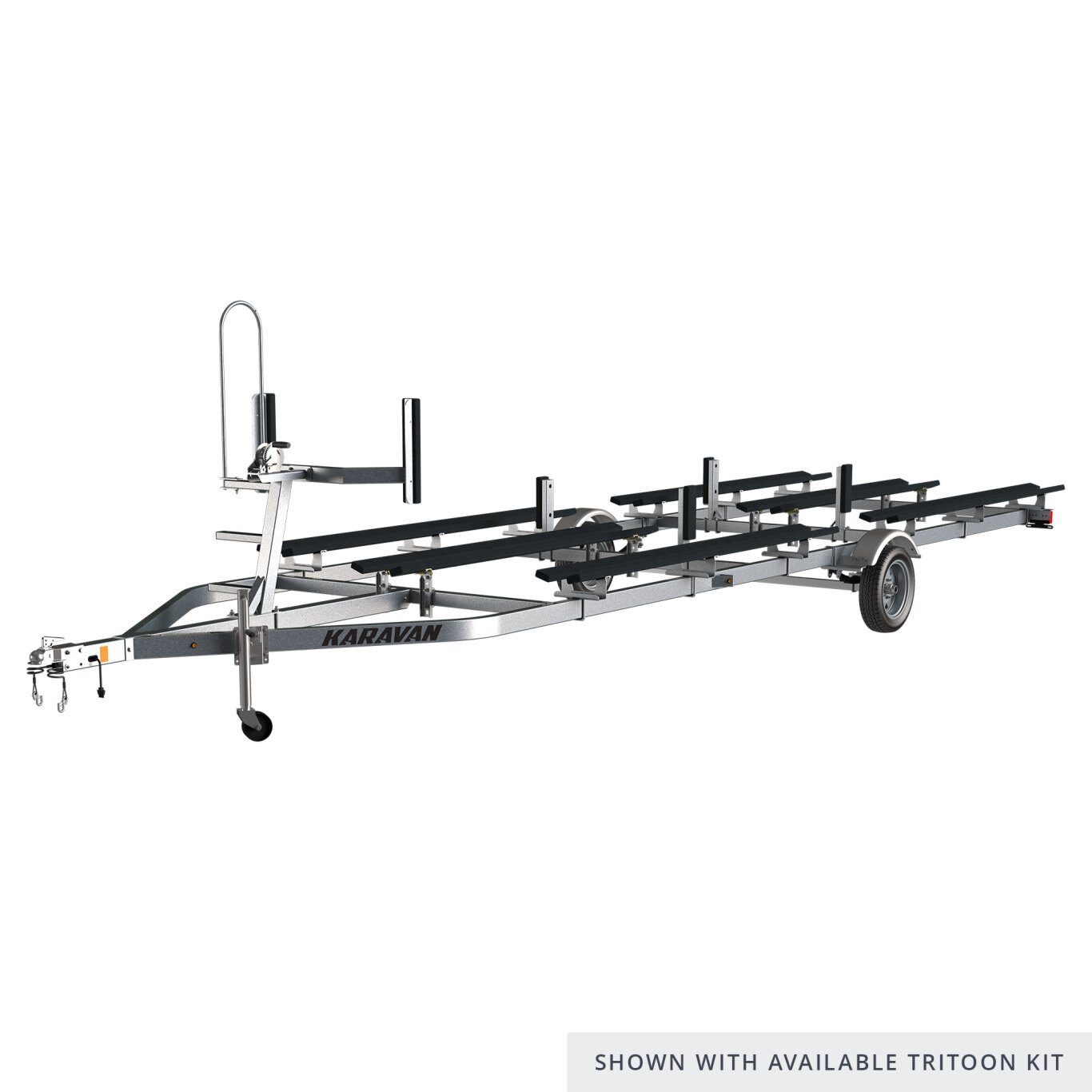 | Larger in size, our Single Axle Large Pontoon Trailer is designed to fit pontoons up to 25′ in length and is easier to turn given its single axle design. This trailer also looks good, with a galvanized or powder-coated finish as attractive as it is durable. Reliability is built in with smart lighting and wheel bearing systems. |