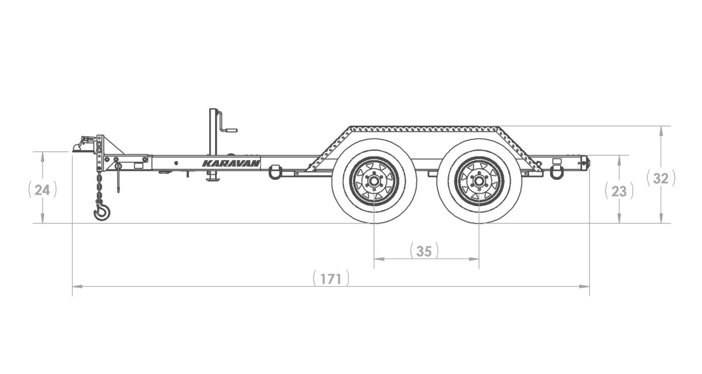 The 69 x 95 In. 10000# GVWR Industrial Trailer is a versatile industrial trailer with adjustable undercarriage and cross members. This model is designed with a built-in, nonslip rugged walk area for easy accessibility. Additional sizes are available. Model WGT-10000-TEB-67 |