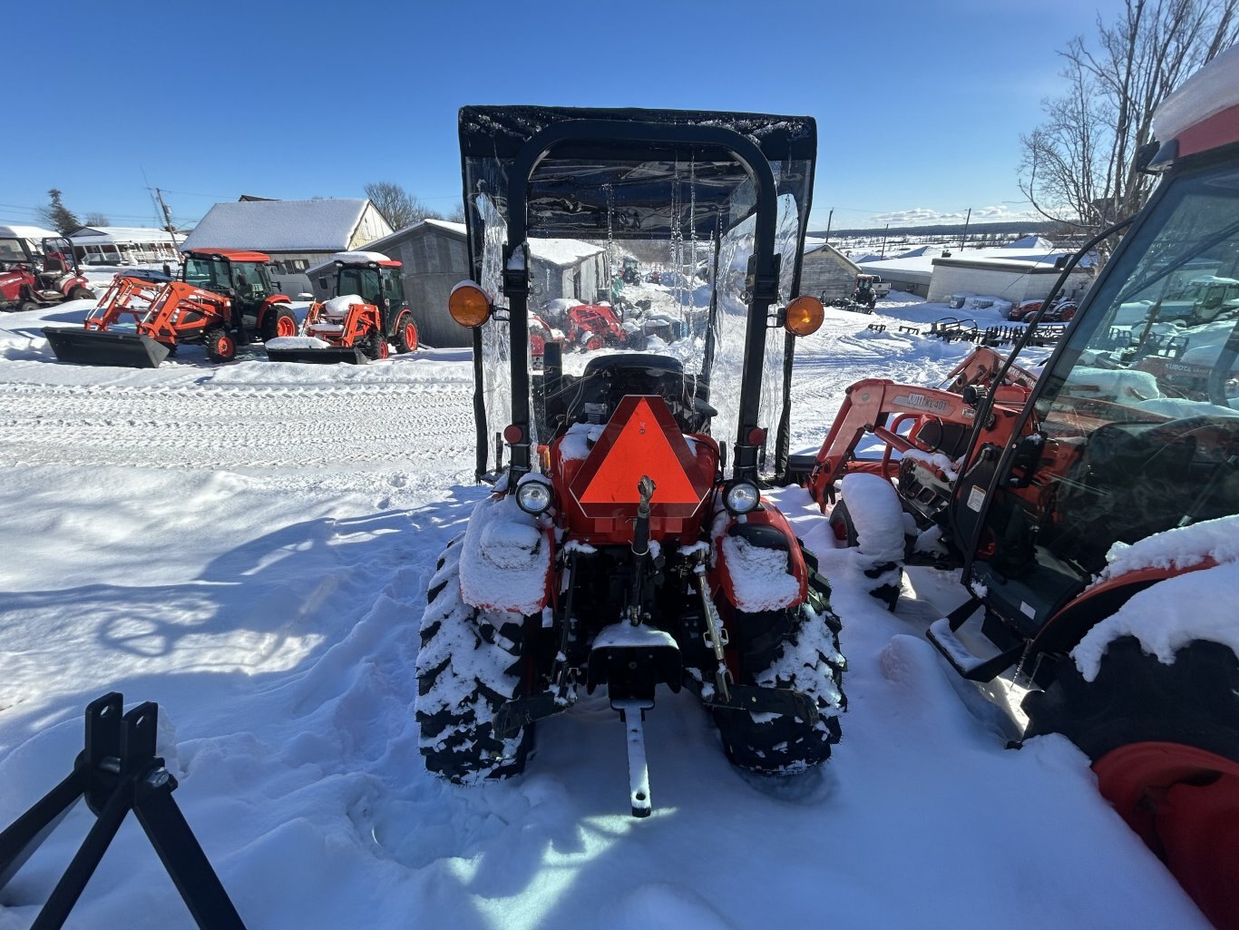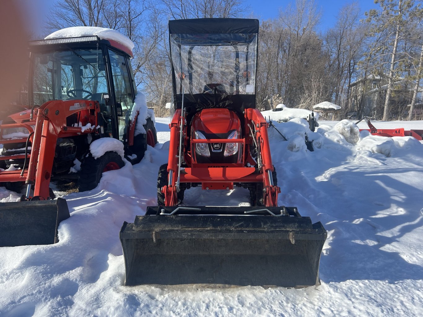 Kioti CX2510 with Kioti KL2510C loader. 4WD tractor with 4 brand new R14 tires, High and Low range, one set of rear remotes, cruise control, rear work lights, tilt steering, Berco add on cab, homemade canopy. Come check it out