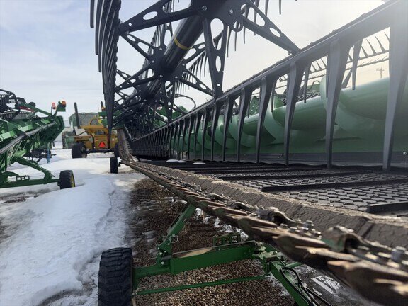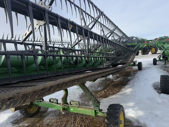 John Deere HDF45 with Fingered Top Auger, Integrated Transport and Hitch and High Wear Skid Shoes, Located in Camrose