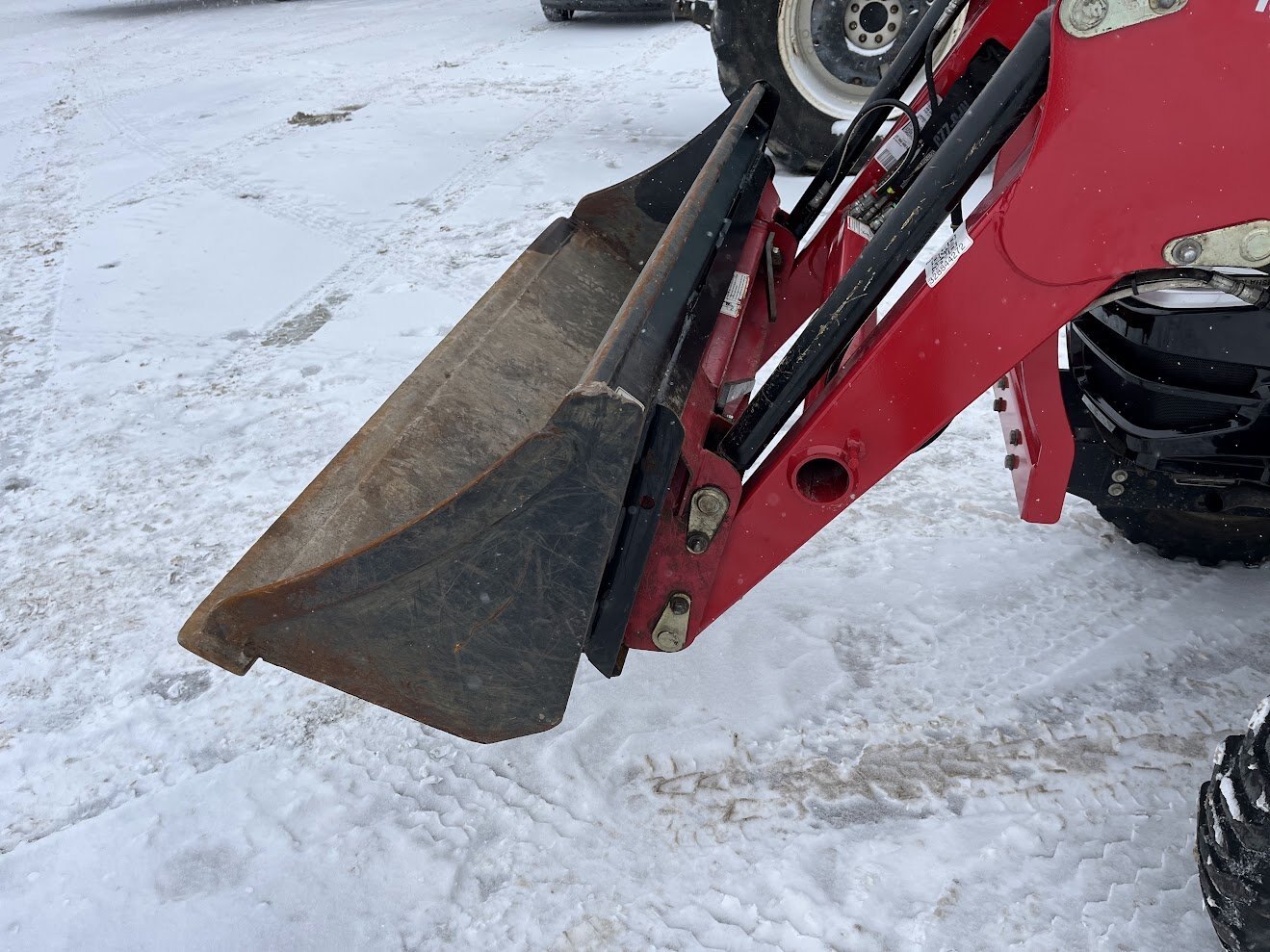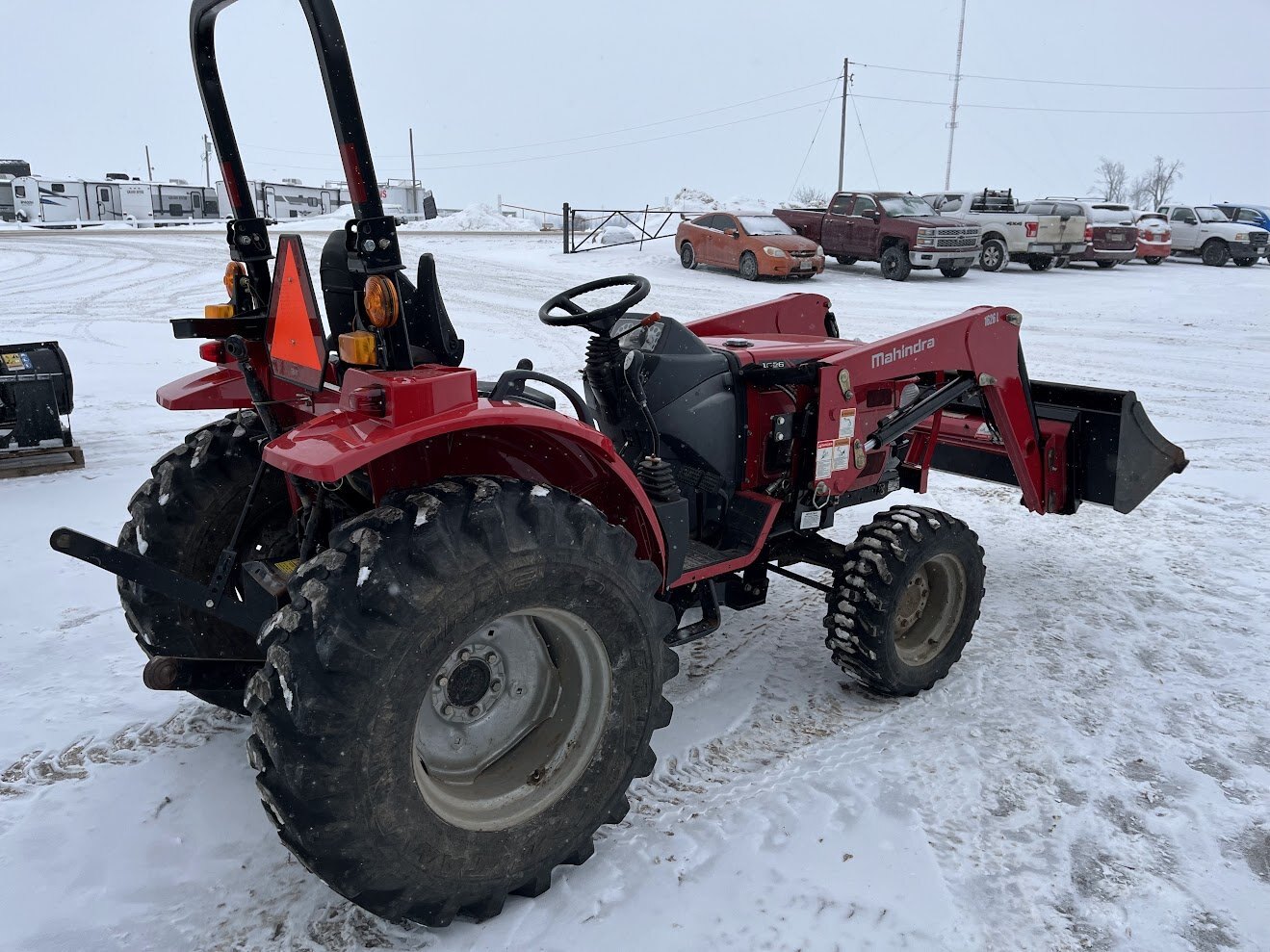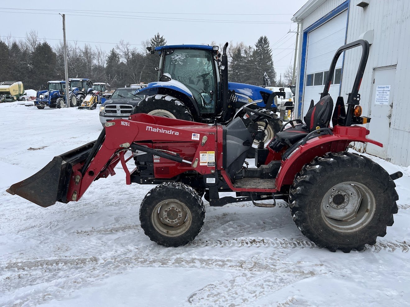 2021 Mahindra 1626 Tractor and Loader, 26 horsepower, 3 cylinder diesel engine, four wheel drive, 3 range Hydrostatic Transmission, Mahindra Loader with skidsteer quick attach bucket, 3 point hitch, 540rpm PTO, quick start glow plugs, 765 Hours, Powertrain warranty until June 2028
