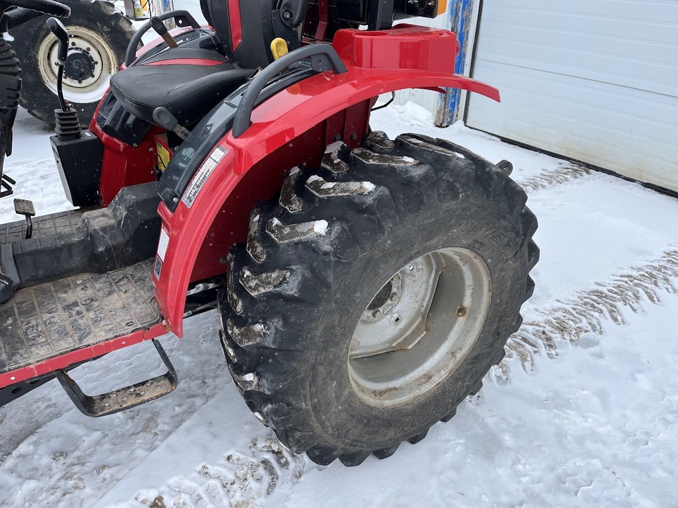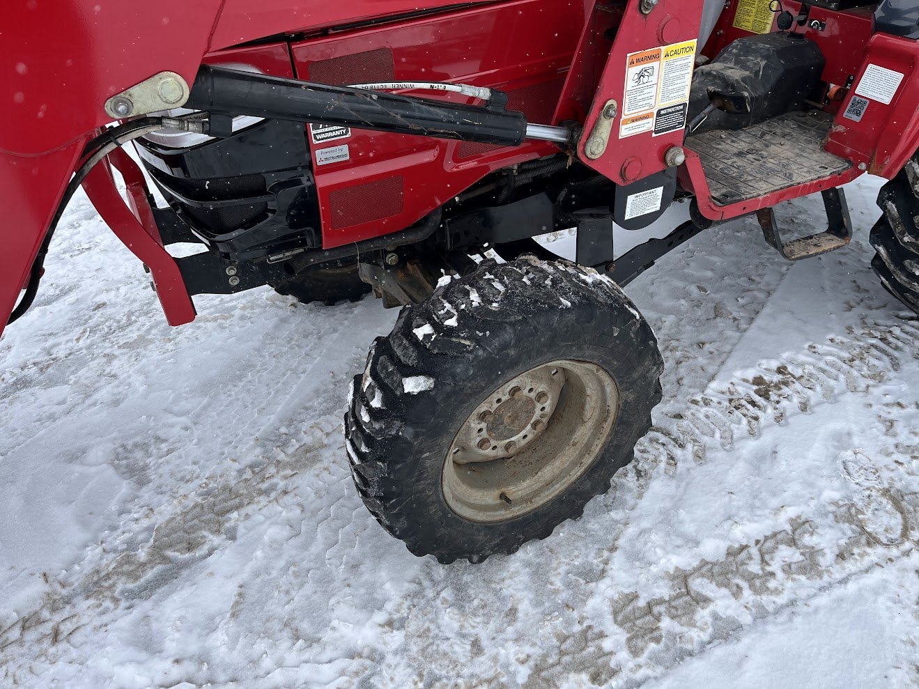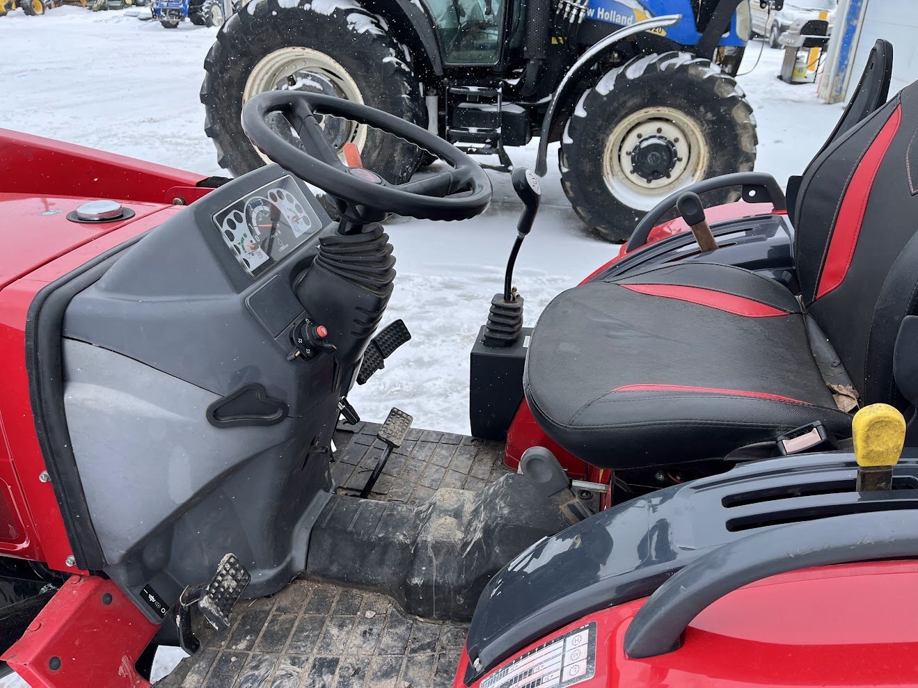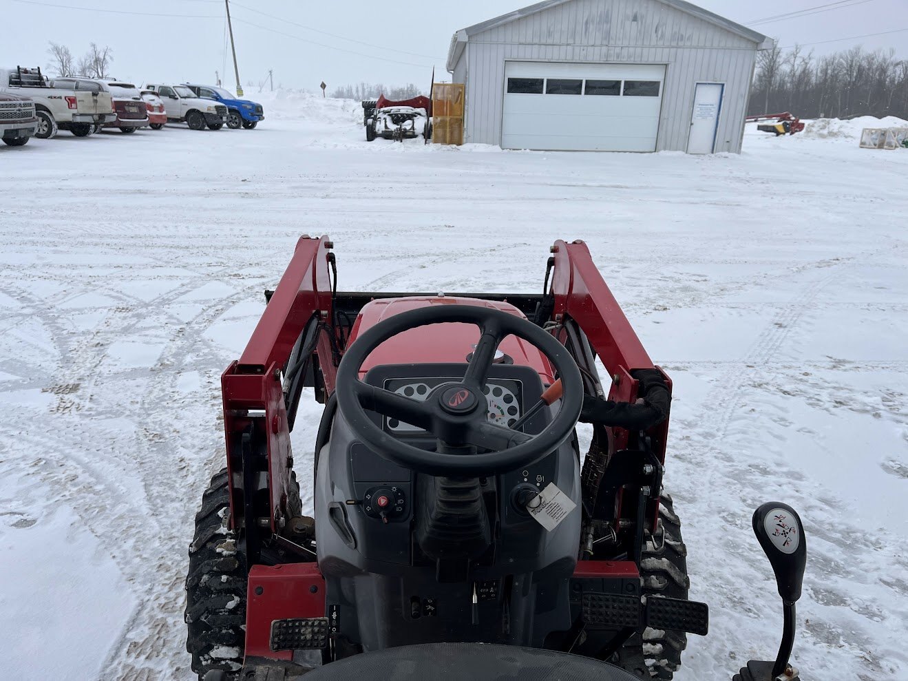 2021 Mahindra 1626 Tractor and Loader, 26 horsepower, 3 cylinder diesel engine, four wheel drive, 3 range Hydrostatic Transmission, Mahindra Loader with skidsteer quick attach bucket, 3 point hitch, 540rpm PTO, quick start glow plugs, 765 Hours, Powertrain warranty until June 2028