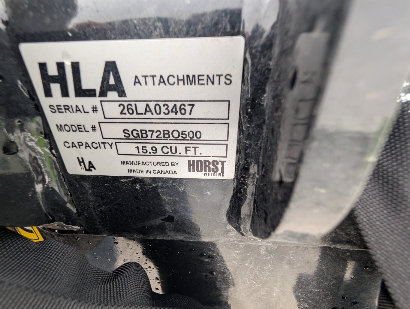 2026 HLA 72" Scrap Grapple with universal skid attach. 90 degree hose kit with flat face couplers.