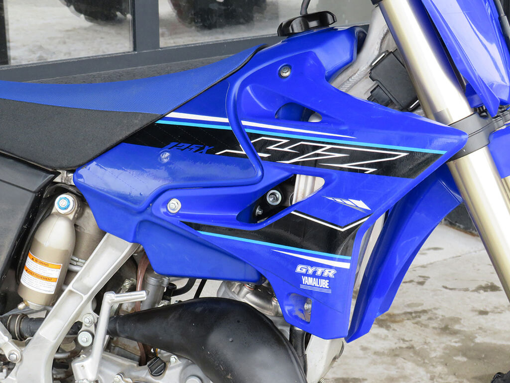 Based on the legendary 125 cc liquid-cooled, reed-valve-inducted YZ two-stroke engine, the YZ125X utilizes a revised compression ratio, Yamaha Power Valve System (YPVS) timing, and a model-specific CDI unit, all focused on creating broad power delivery that suits off-road terrain and a wide range of rider skill levels.