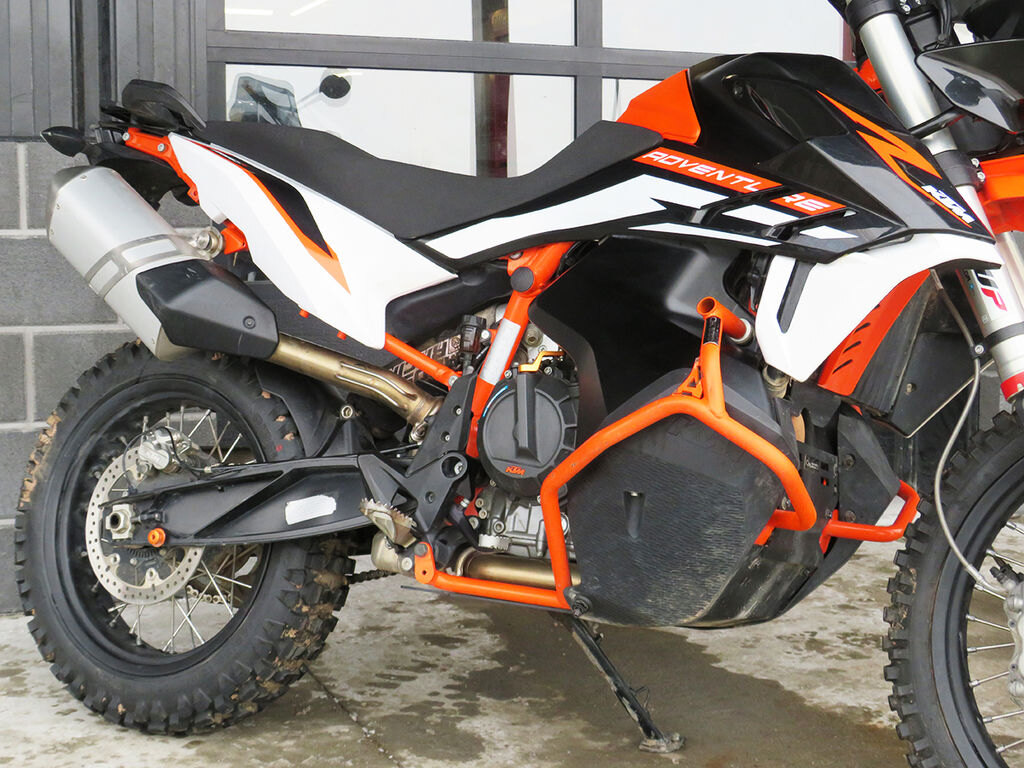 KTM's 890 Adventure R always seems to have a hard time deciding whether it wants to be a fairly comfortable, easy-to-ride light-tourer, or a highly capable fire-road weapon. Either way, you are in competent hands no matter where your destination may be. This trade-in features Outback Motortek crash guards and skidplate, adding to the already impressive components that the R model is famous for.