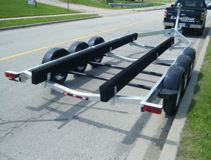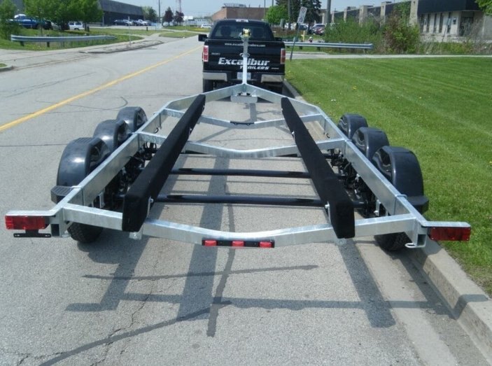 Features:- Fully welded tube steel construction Excalibur BT9000 Tri Axle Boat Trailer 9000lbs total boat capacity Also available in Tandem 5200lb axles configuration (same capacity & same price) Most hull sizes in stock or we will custom build to suit your boat. Other Tri and Quad axle trailers available to 28,000lbs |
