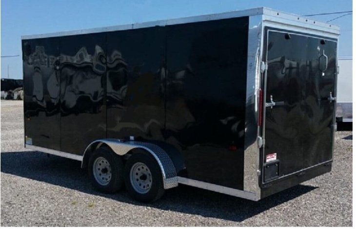 7 X 16 V-Nose Tandem Axle Enclosed Cargo Trailer With Rear Ramp