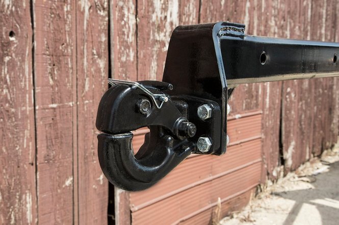 - Pintle end hook with spring-loaded locking arm & pin