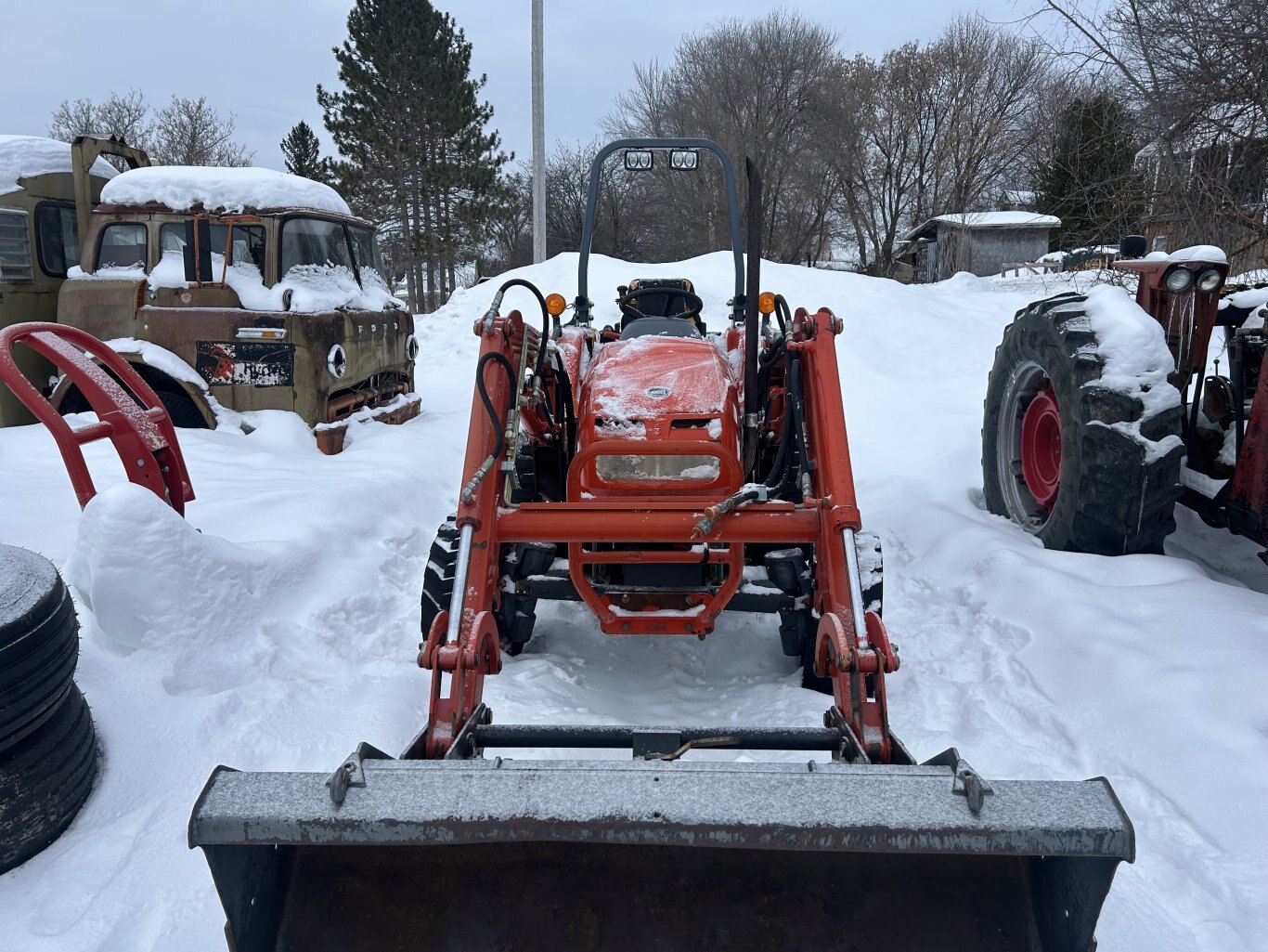 Kioti DK35SE with Kioti KL351 loader. 4WD tractor with 1 set of rear remotes, high medium and low ranges, tilt steering, brand new Kioti seat with arm rests (not shown in pictures). Fully serviced and looked over by one of our mechanics.