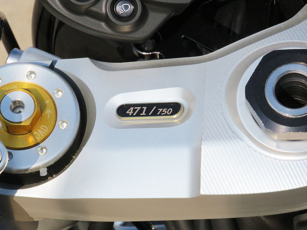 Gold-Anodized Details: Fork lowers and suspension fork adjusters add striking contrast and a refined, custom appearance. Engine Cover Badges and Chain: Billet-machined engine cover badges with intricate gold detailing and a gold-finished chain highlight meticulous attention to detail and elevate the bikes luxurious appeal. Gold Ignition Key: A branded key with gold detailing, adding an exclusive touch to the rider\'s experience.